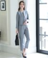 ■ショート丈ジャケットの美脚パンツスーツノーカラーなので顔周りや首元をスッキリと魅せてくれます。小物やアクセサリーの組み合わせ次第で、カジュアルにもフォーマルでもお使い頂けます。小柄さんでも挑戦しやすいショート丈ジャケットのパンツスーツ。パンツは座った時も太もも回りが窮屈に感じにくいタックの入ったデザイン。