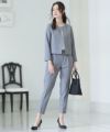 ショート丈ジャケットの美脚パンツスーツ スタイルアップノーカラージャケットパンツスーツ