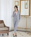 一味違うノーカラーがオシャレ ノーカラージャケットパンツスーツ