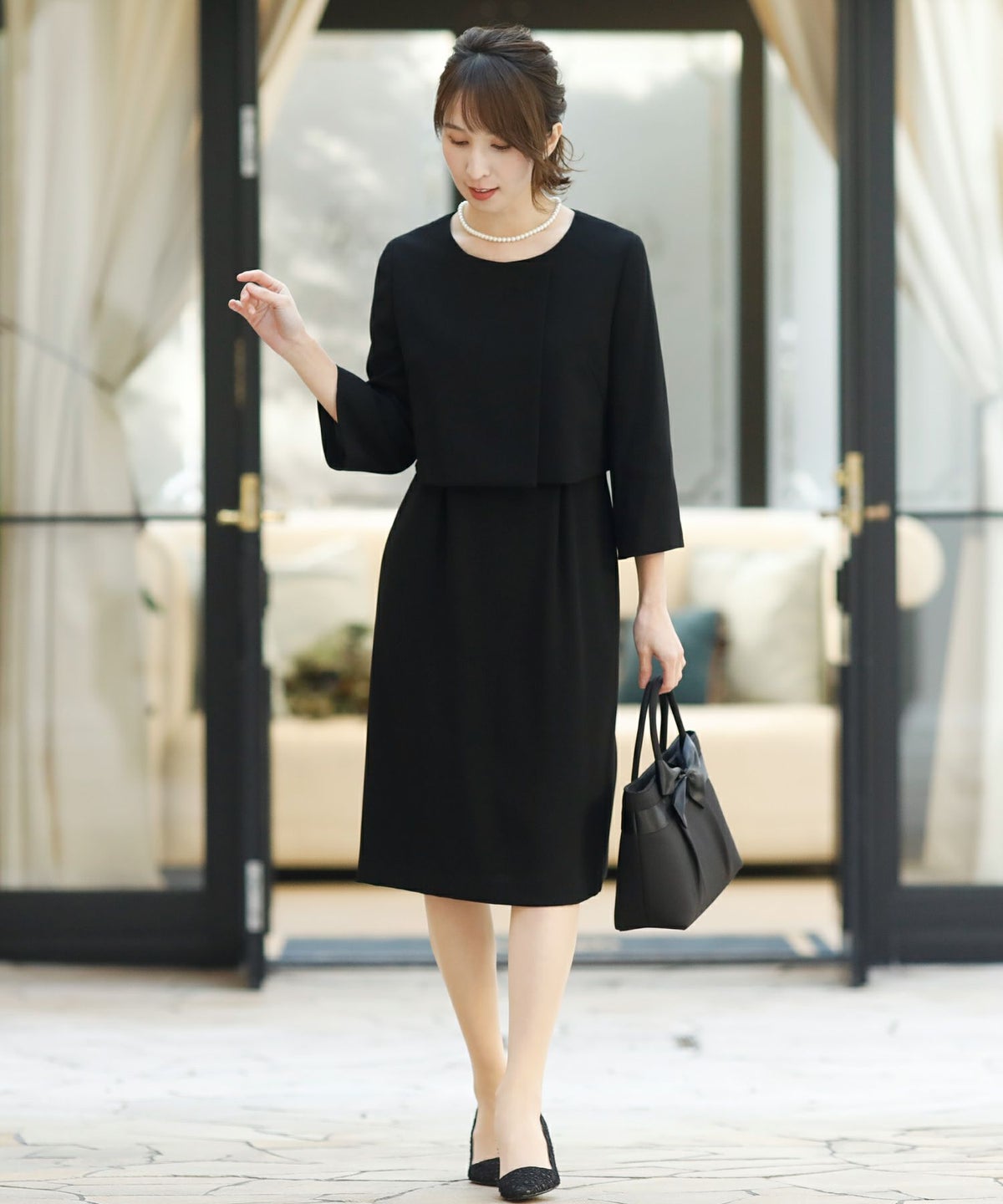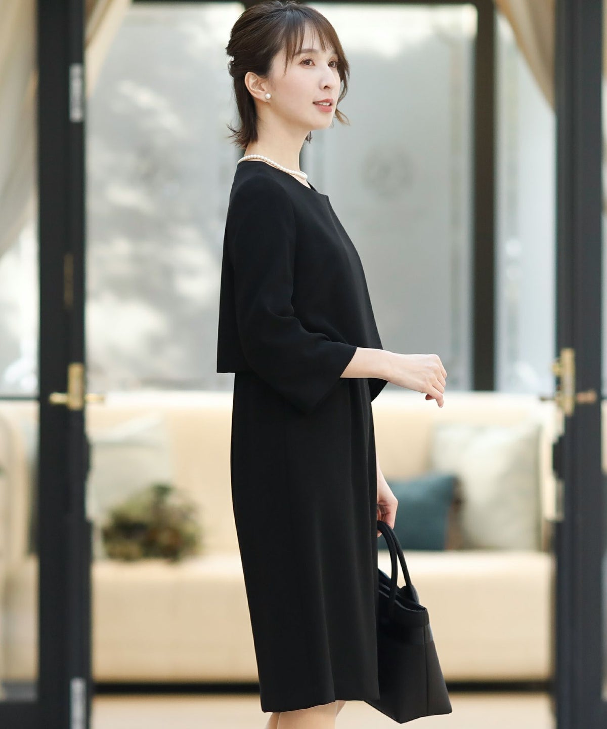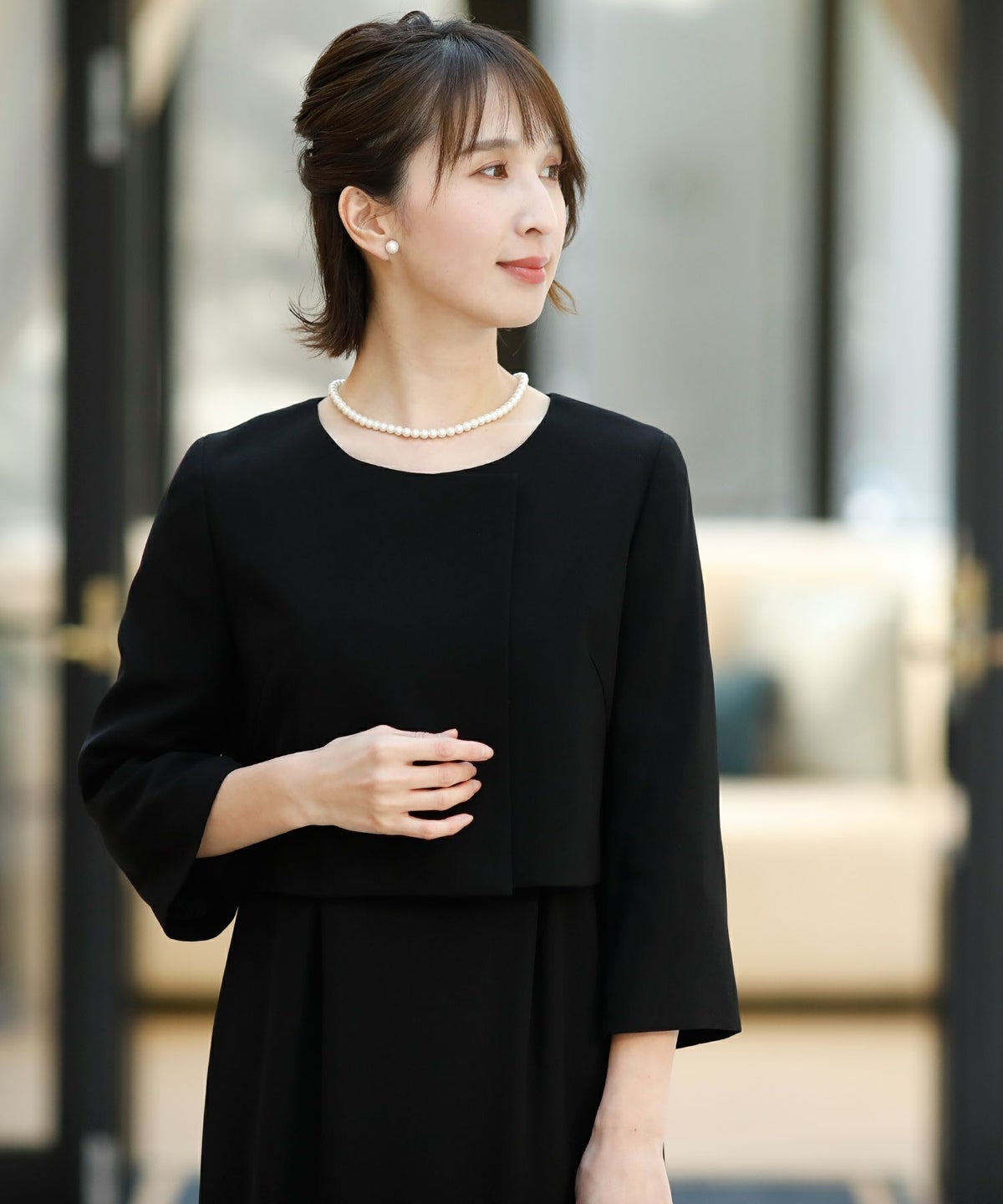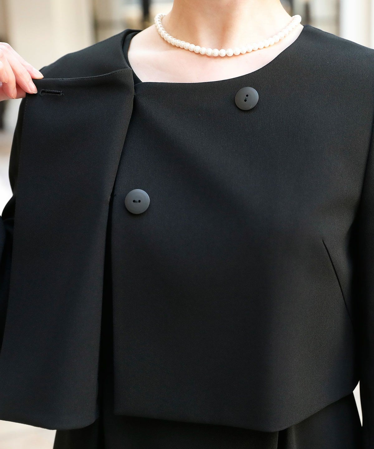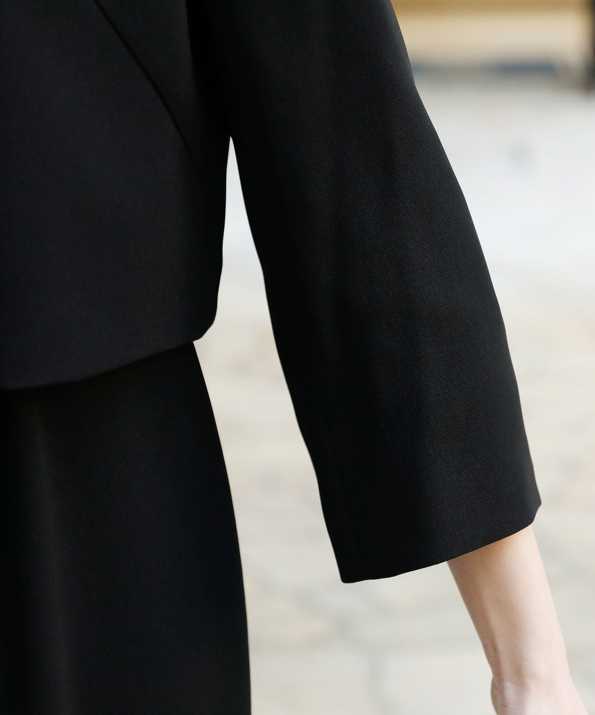きちんと感と女性らしさを叶える ノーカラージャケットブラックフォーマルアンサンブル