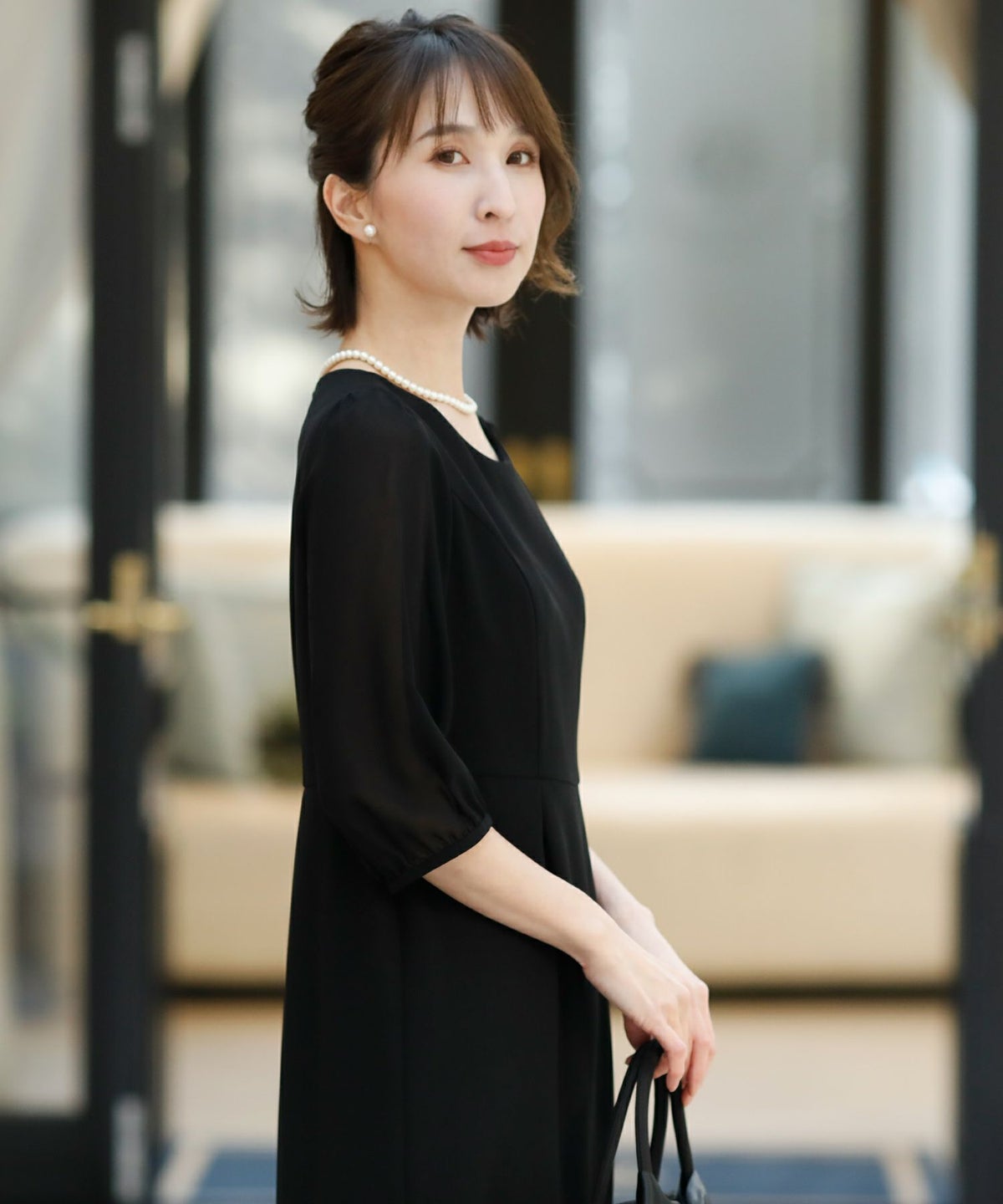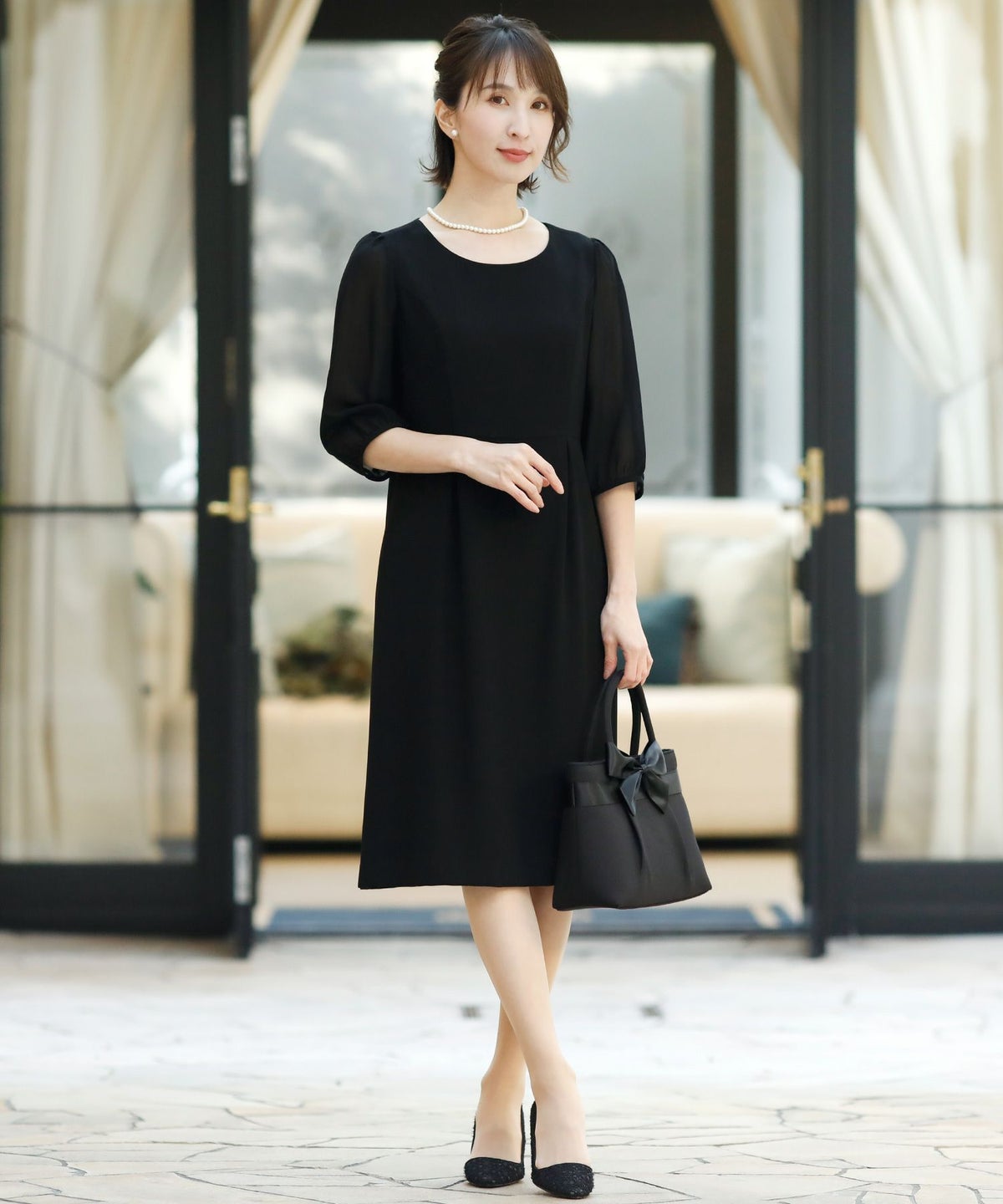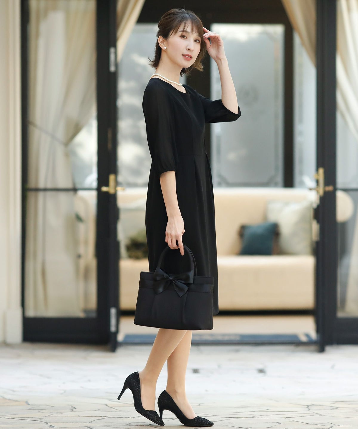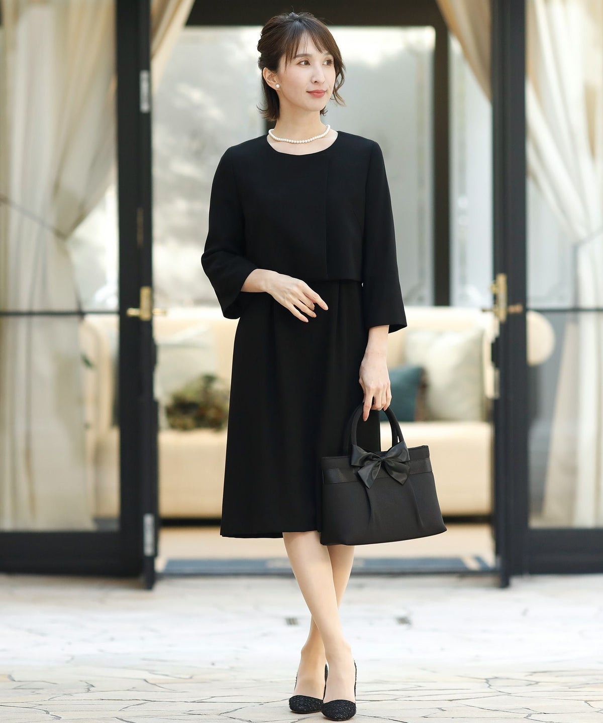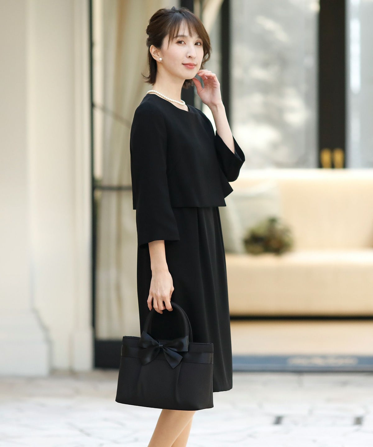 きちんと感と女性らしさを叶える ノーカラージャケットブラックフォーマルアンサンブル