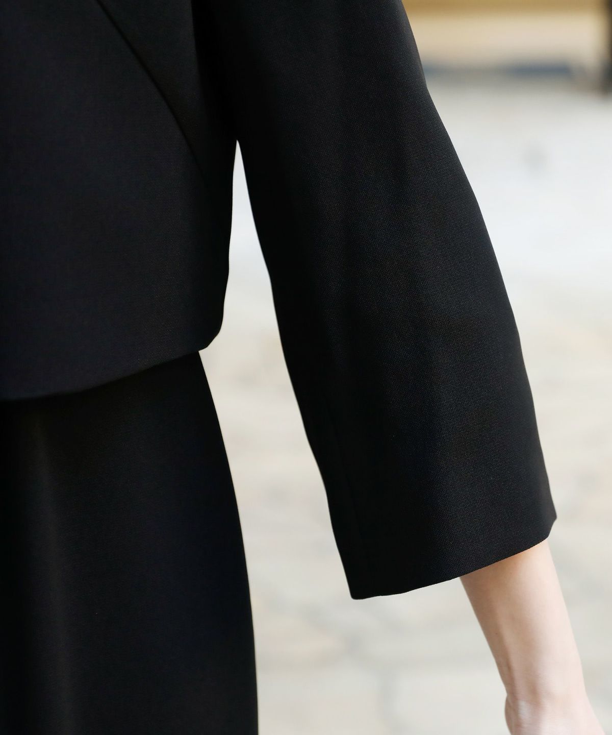 ★体型カバーポイント------------------------------------------------------------【腕】【脚】【ウエスト】【ヒップ】ショート丈のジャケットで脚長効果が期待出来ます。ワンピースはタックが施されていて、ふんわりシルエットが美しいミディアム丈。おしゃれに脚やヒップをカバー出来ます。