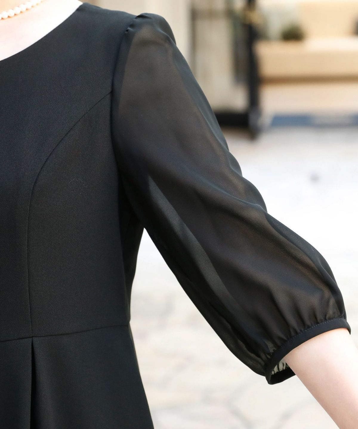 ★素材感------------------------------------------------------------しっかりとした少し厚みのある高級感ばっちりなアイテム。ワンピースの袖部分のみ、やや透け感のあるさらりとした質感です。