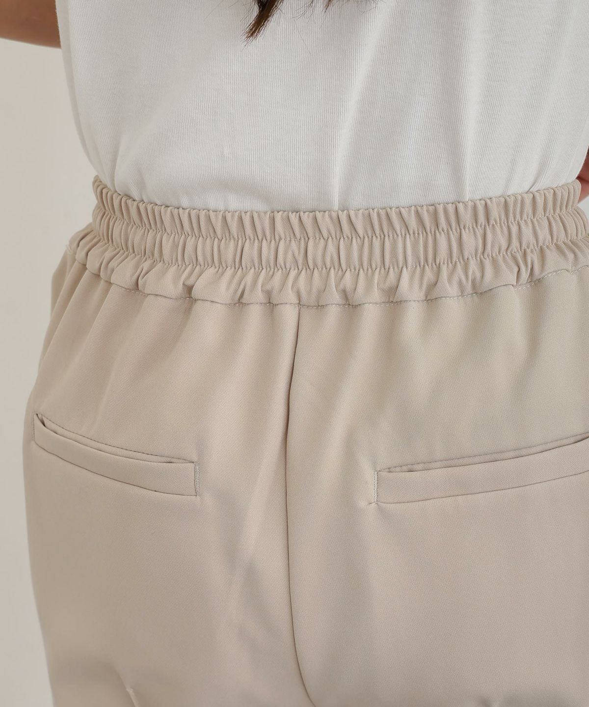 ウエスト総ゴム&ポケット付きでラクな着心地。
