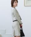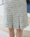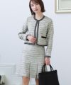 ■ノーカラージャケット×プリ―ツスカートのセットアップラメ素材とプリーツスカートが華やか♪定番のノーカラージャケットにフレアスカートを合わせたフェミニンなセット。ゴールドのラメ糸を使用した煌めく生地が女性らしい柔らかな印象です。アイテムは別々にも使用可能で活躍の場も広がります。