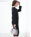■Vネックで上品な印象にワンピースは便利なポケット付きで、Iラインシルエットが女性らしさを演出します。