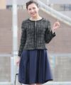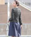 先染め素材が風合いの美しいミックスツイード生地を使用したジャケット。ワンピースのスカート部分は光沢感ある上品で華のある生地感になっています。