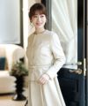 ★体型カバーポイント------------------------------------------------------------【二の腕】【脚】【ウエスト】【ヒップ】ジャケットのペプラムデザインがウエストとヒップをさり気なくカバーしてくれる嬉しいスーツセット♪★軽くストレッチの効いたスーツセット------------------------------------------------------------ありそうでなかった、軽くストレッチの効いたカロリーナニットを使用したスーツ。スッキリとしたノーカラージャケットはペプラムデザインが可愛い作りに。★細見え叶うウエストベルト付き------------------------------------------------------------ウエストベルトで細見せが叶い、ペプラムの広がりがラインをキュッと引き締めて見せてくれます。高めにウエストマークすることでスタイルアップ&脚長効果もあり♪★フィット&フレアワンピースでフェミニンに------------------------------------------------------------ハイウエスト切り替えで美ライン見えする女性らしいワンピース。スカートはウエストのリボンからタックを入れて裾にボリュームを出しているので、歩くたび揺れて可愛い♪★素材感------------------------------------------------------------ワッフル生地のようなデザインが可愛いカロリーナニットを使用。軽く、やや伸縮性あるストレッチ生地感が特徴です。★こんなシーンの利用にオススメ♪------------------------------------------------------------【結婚式】【二次会】【同窓会】【食事会】【セレモニー】【発表会】【オフィス】でもご利用いただけます。