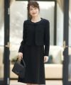 短めのジャケットがウエスト位置を高く見せ、フレアを抑えたワンピーススカートが上品なアンサンブル。