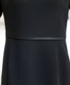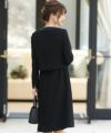 ジャケット襟とワンピースのデコルテ・ウエスト切り替えはサテン地のラインを施して引き締まった印象に。