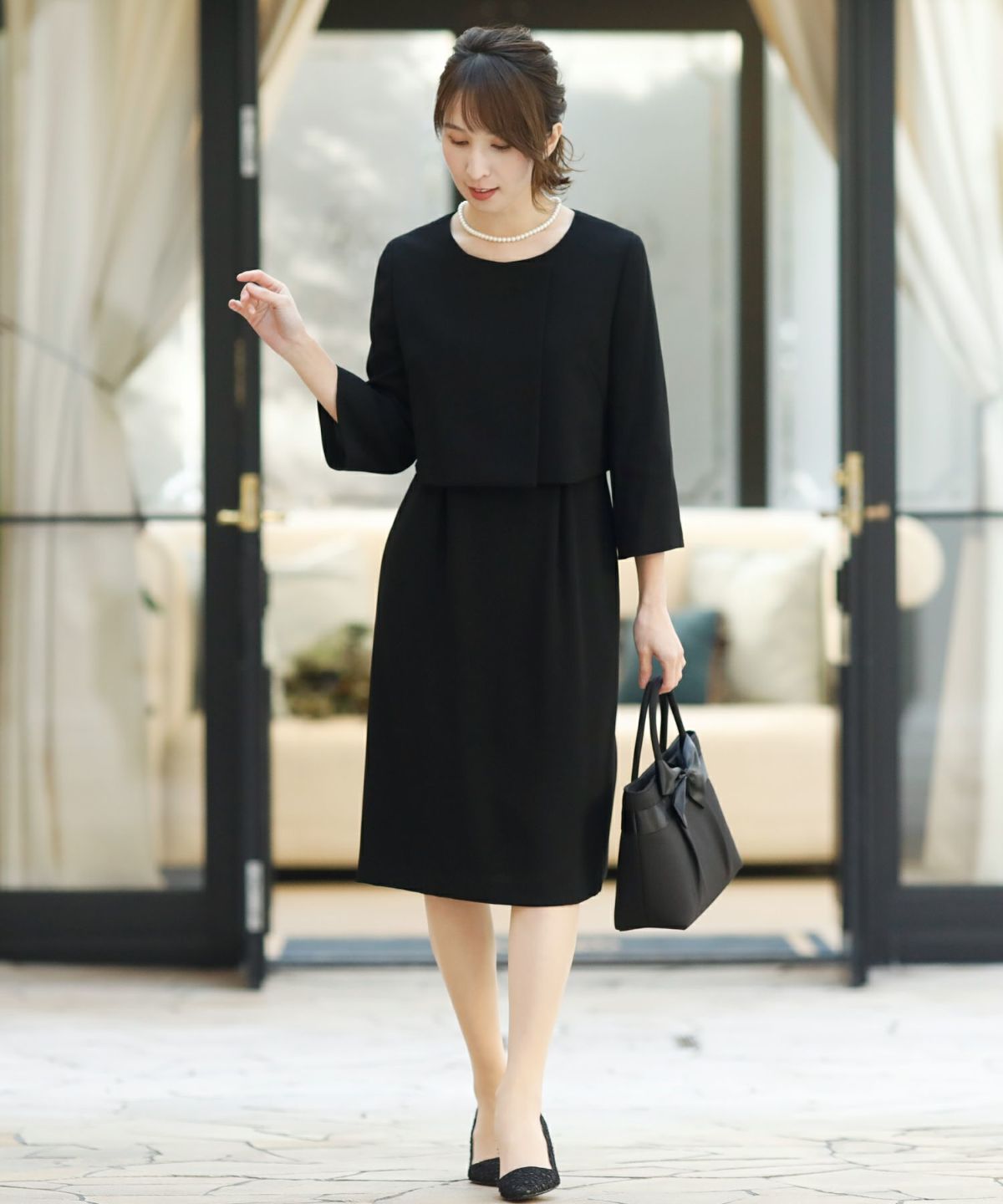 ★クラシカルなシンプルデザイン------------------------------------------------------------シックで高級感のある、クラシカルなシンプルデザインのセットアイテムです。ワンピースはAラインシルエットで、ウエスト位置の切り替えが高めなので脚長効果も◎