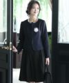ノーカラージャケット+スカートの2点セットスーツ 胸元パールノーカラージャケットスーツ
