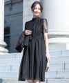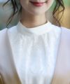 ワンピースのハイネックレースが女性らしく可愛いデザイン。