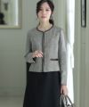 ■ツイード×ノーカラーツイードジャケットとワンピーススーツの2点セット。ショート丈のジャケットがAラインのワンピースを際立たせ美しく見えます。ツイード生地のジャケットは、フォーマルさの中に柔らかさ感じさせます。シンプルなデザインのため、さまざまなシーンでお使いいただけます。