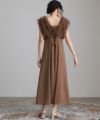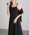 華やかなチュールベストがセットになったAラインドレス。