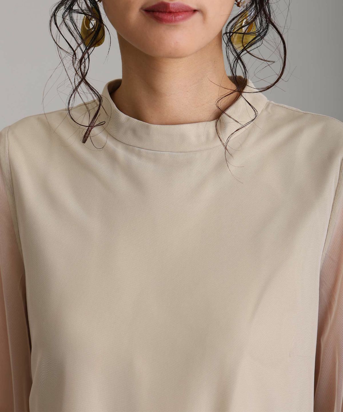 ボディにフィットしすぎず、袖部分の透け感でやわらかい印象に。
