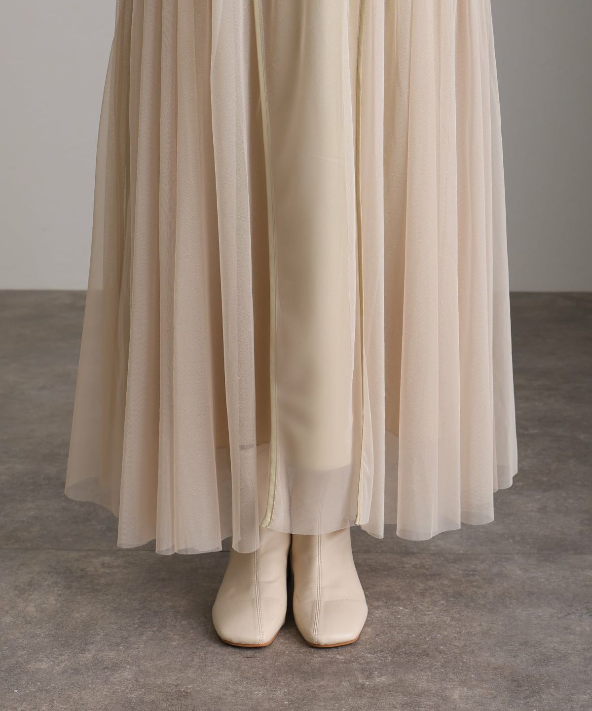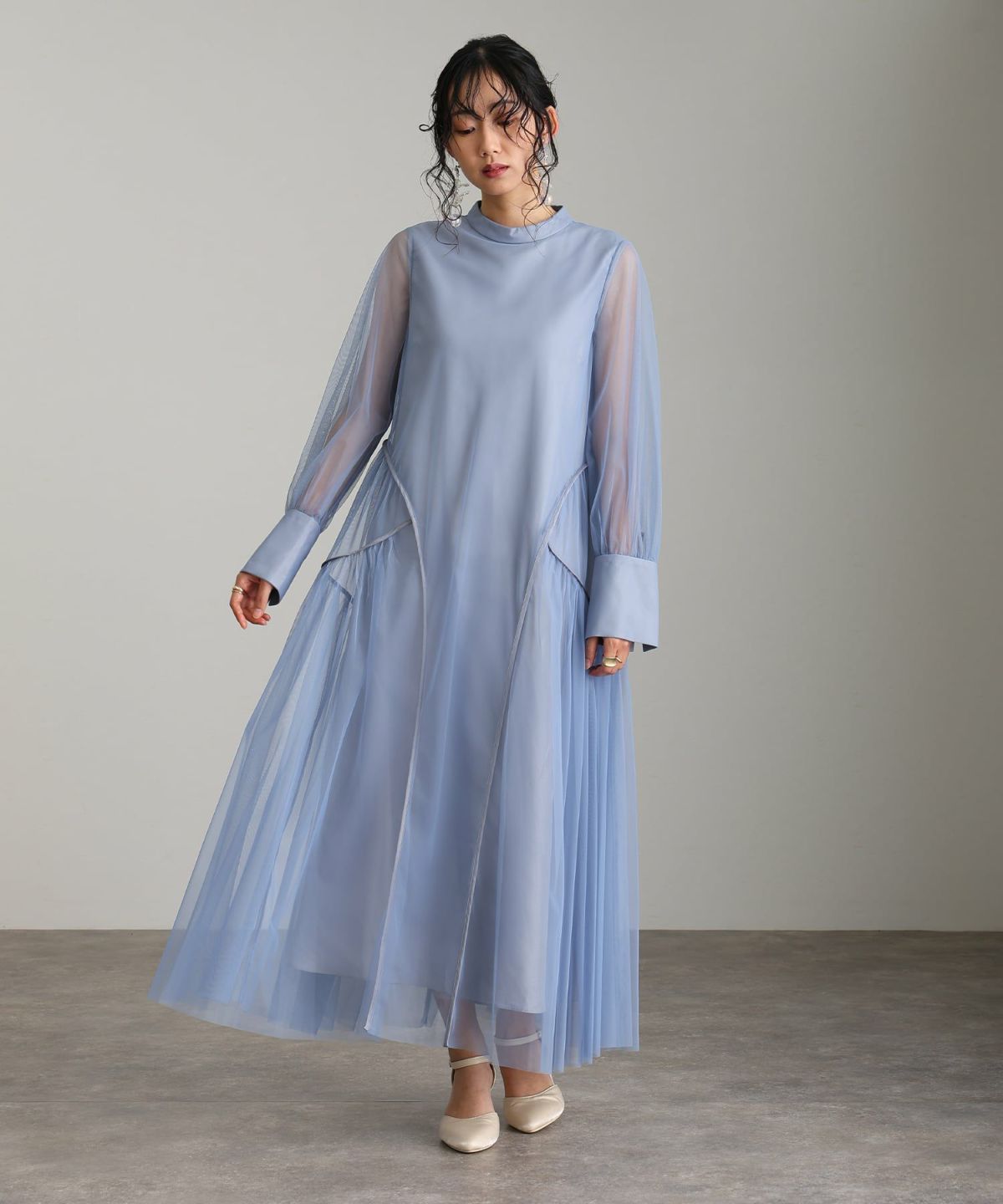 軽やかなソフトチュールが特徴的なシンプルなAラインワンピース。