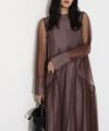 軽やかなソフトチュールが特徴的なシンプルなAラインワンピース。