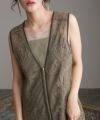 デコルテ部分に施されたレースが、控えめな透け感で上品さを引き立てます。