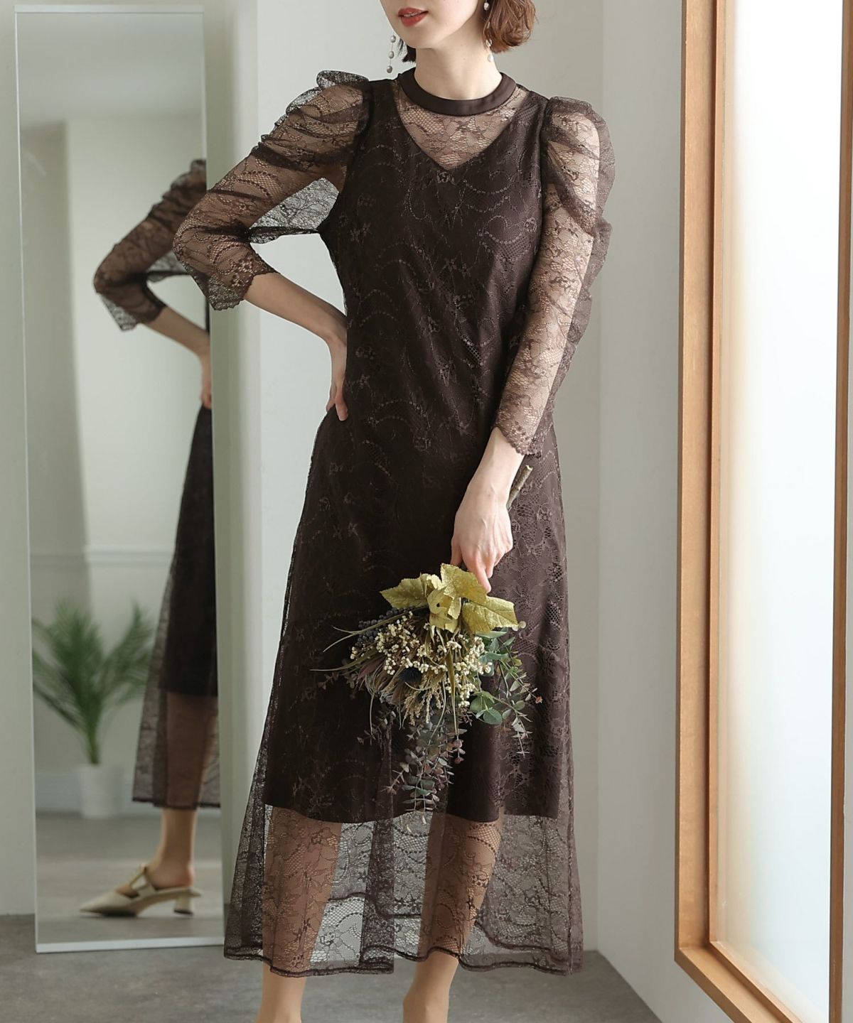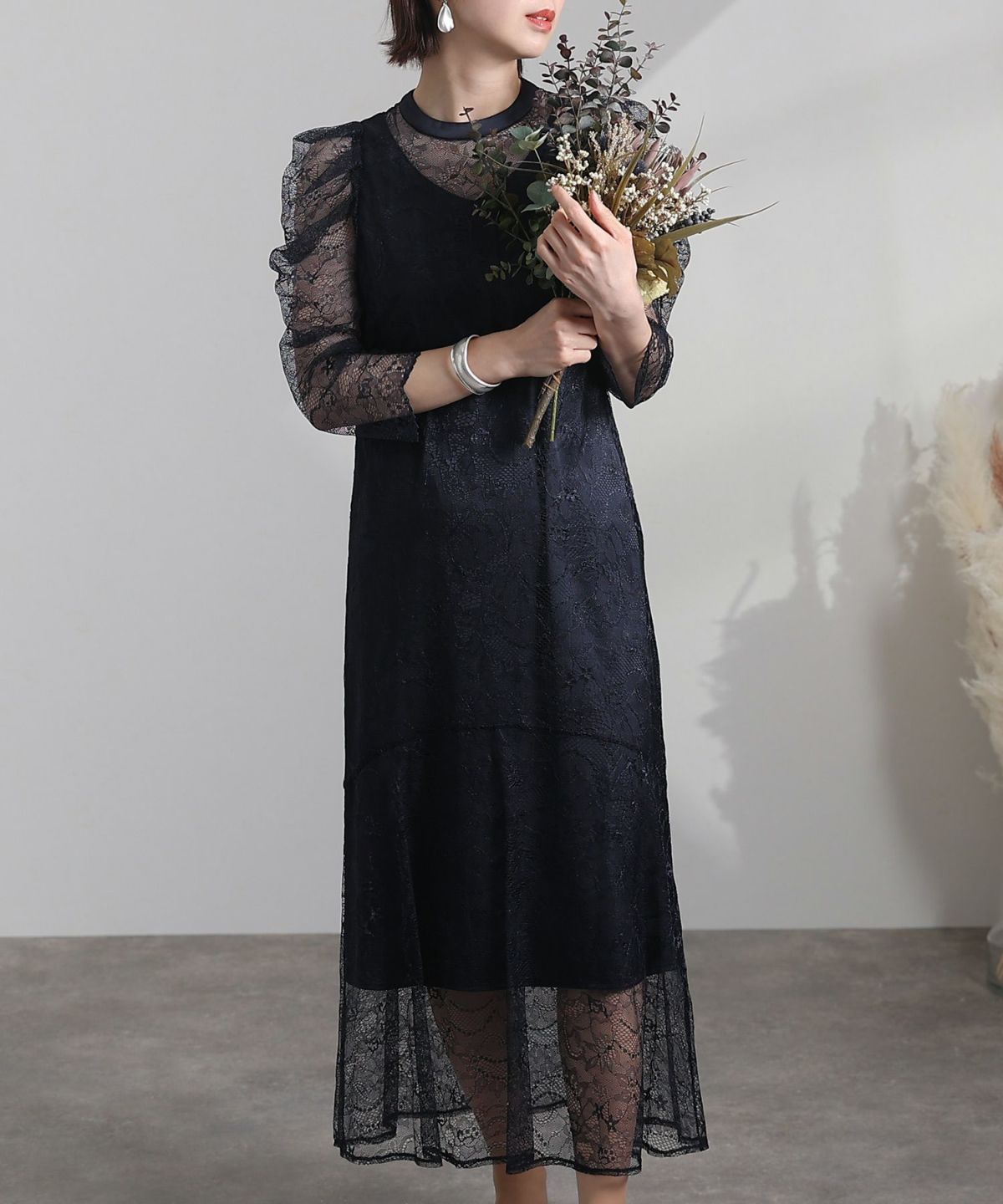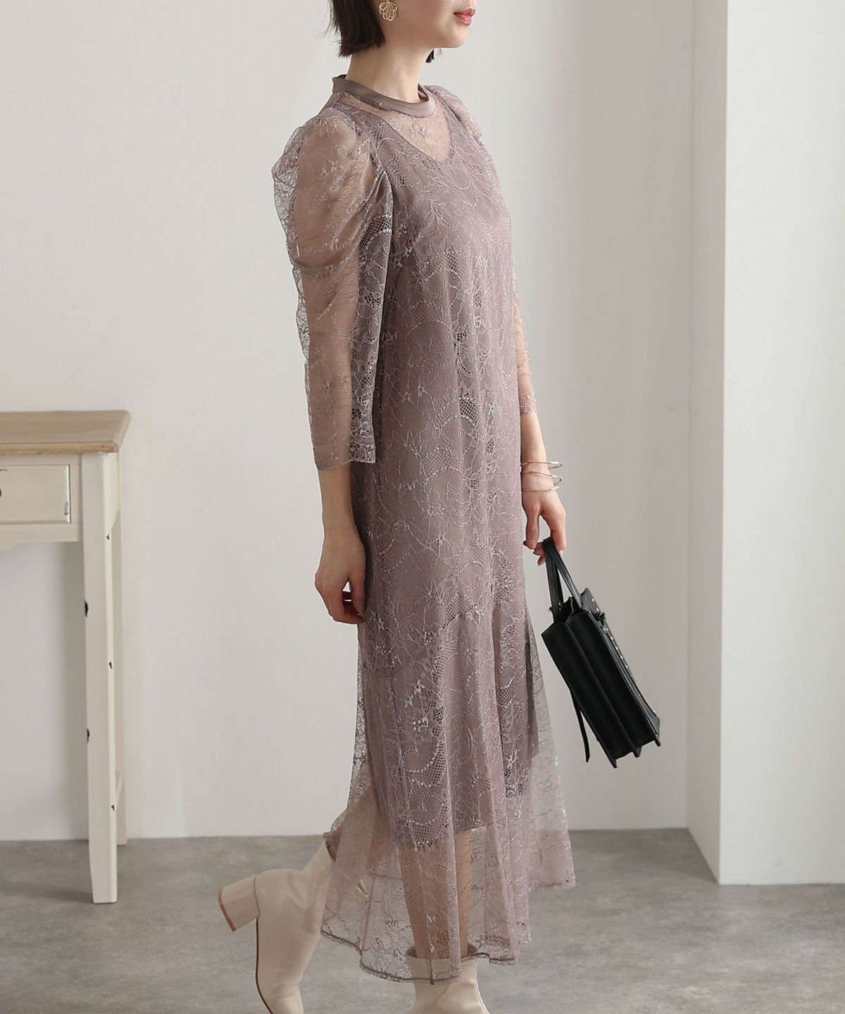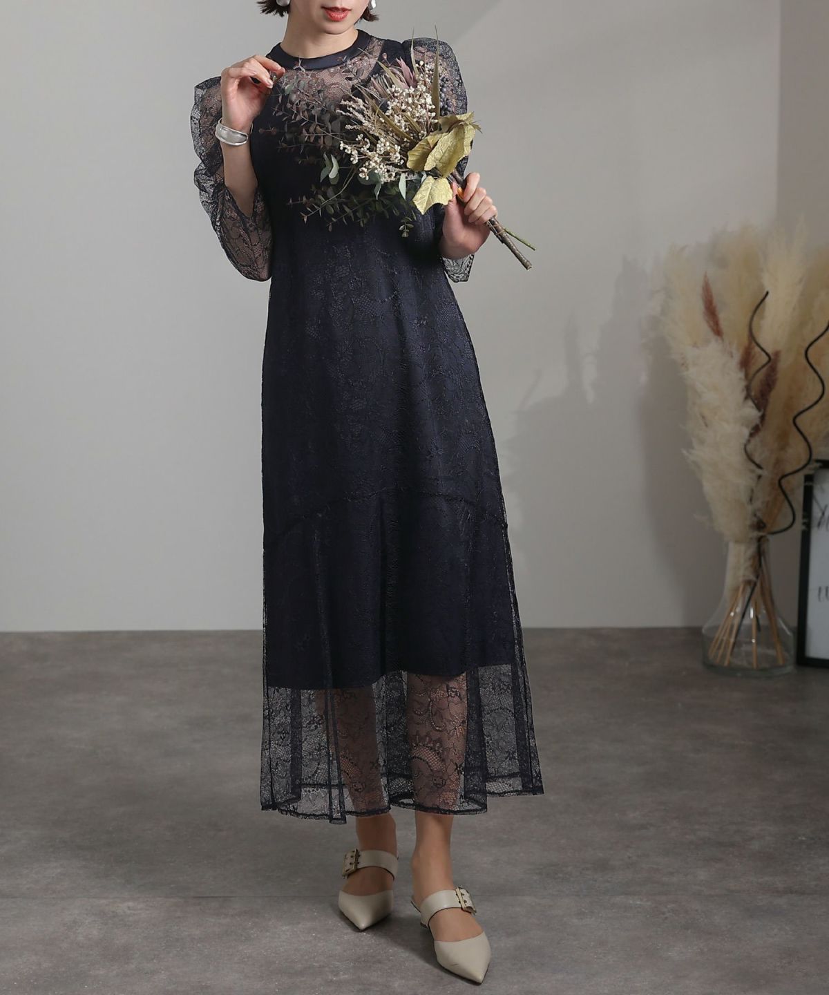 甘過ぎないデザインが大人っぽい パワーショルダーティアードレースワンピース
