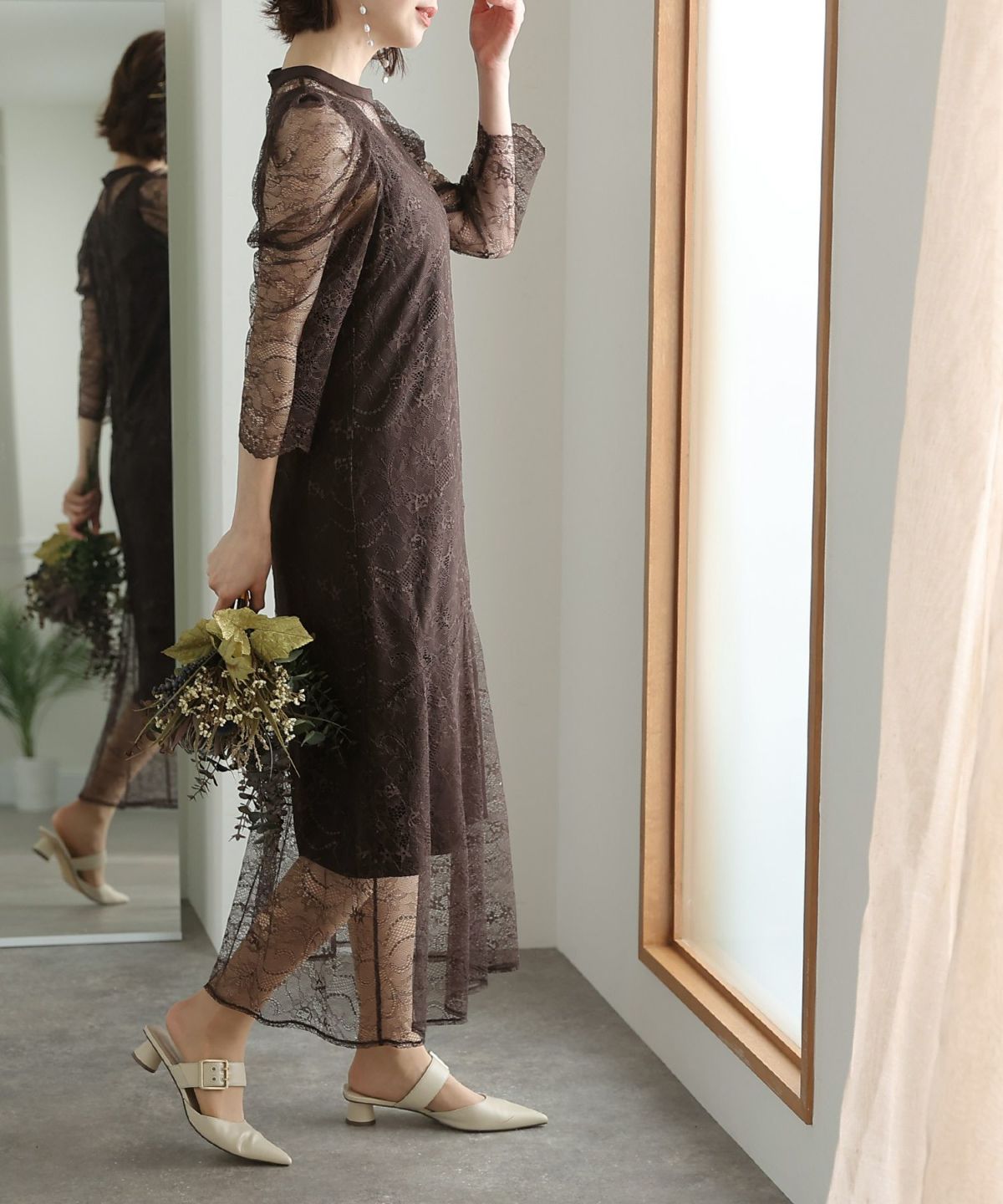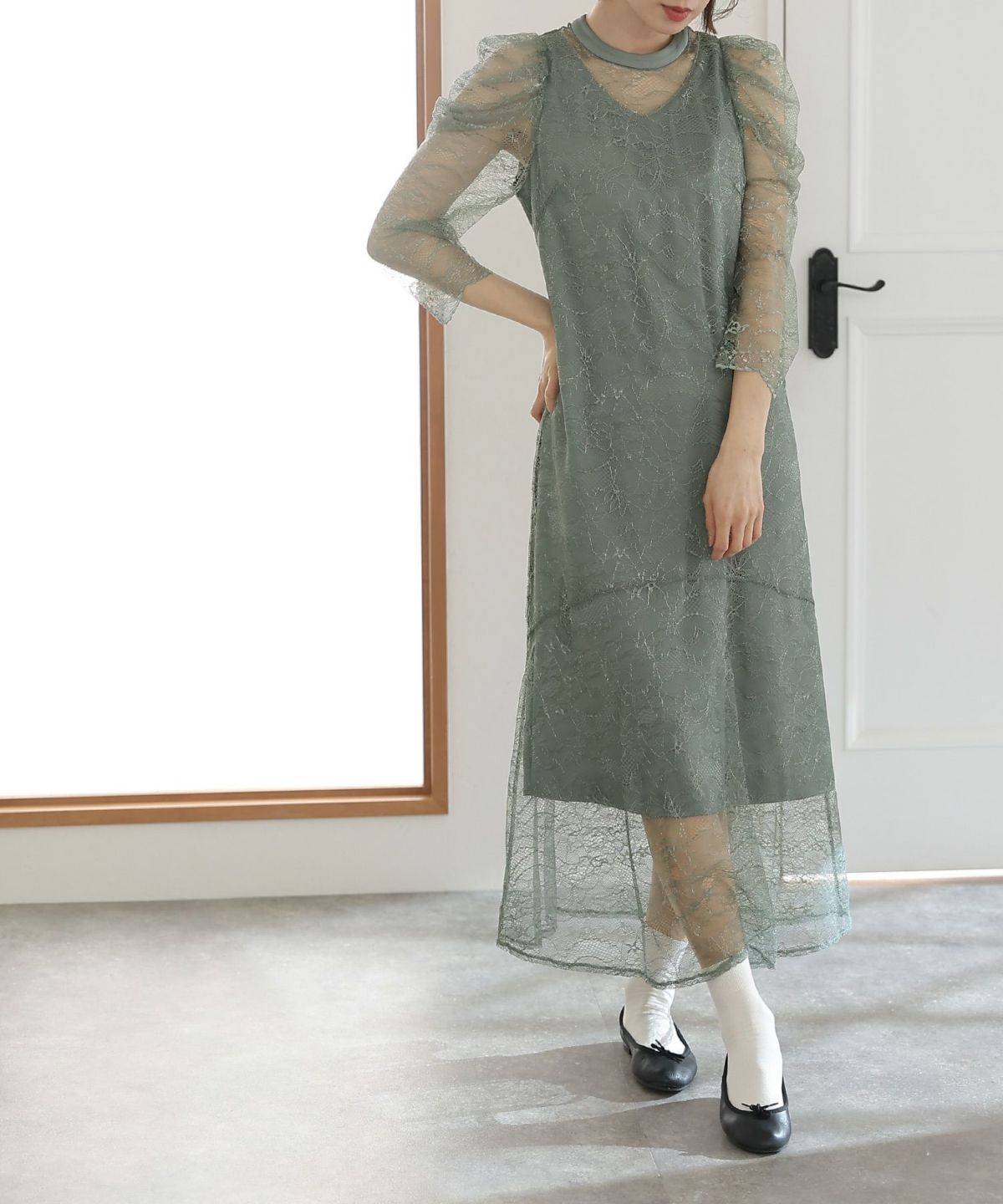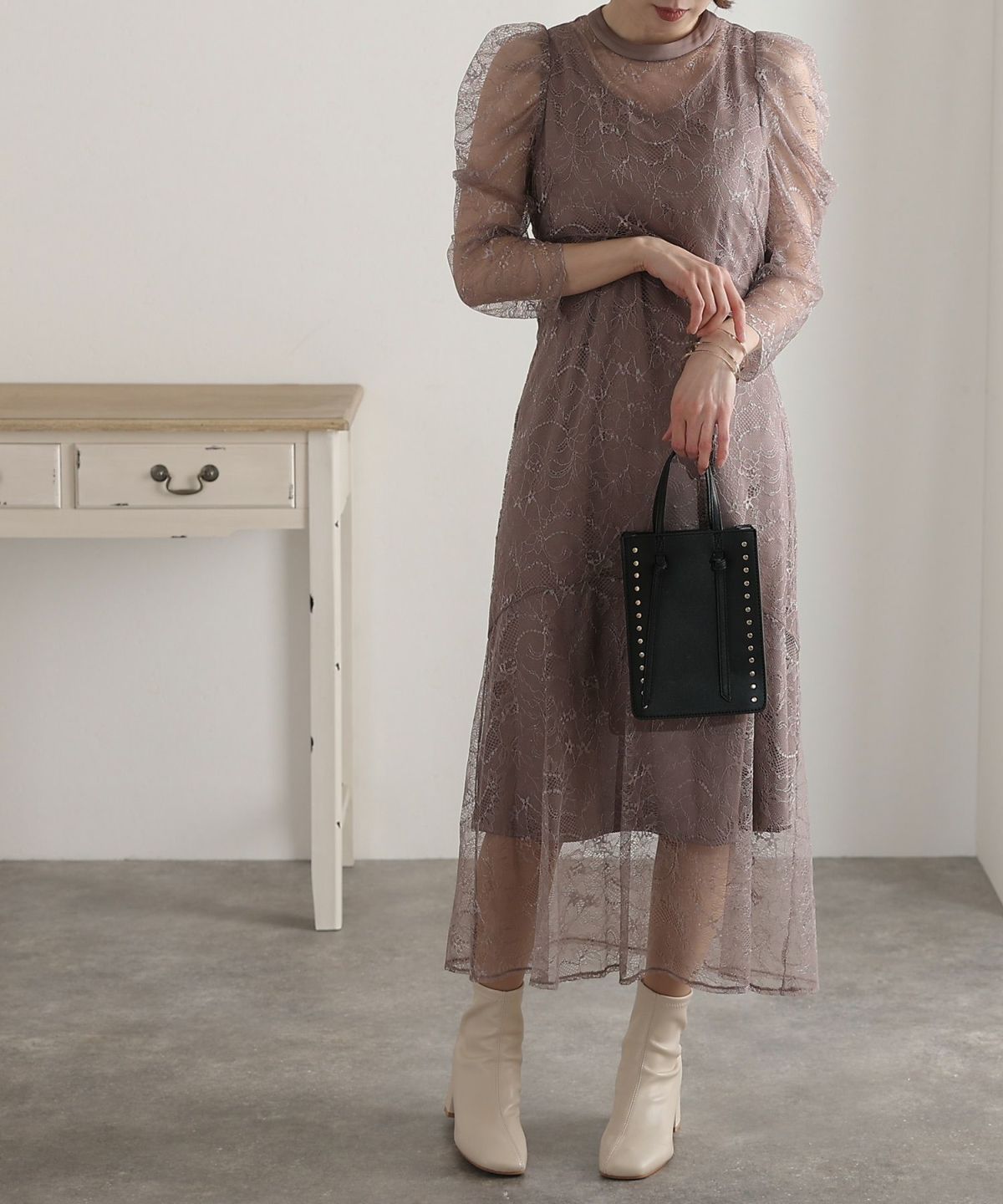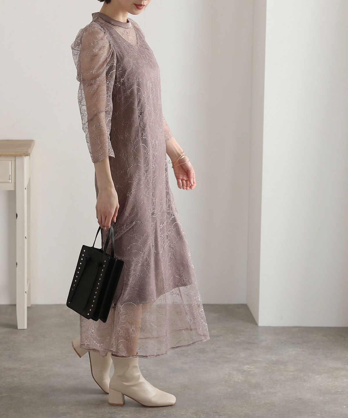 甘過ぎないデザインが大人っぽい パワーショルダーティアードレースワンピース