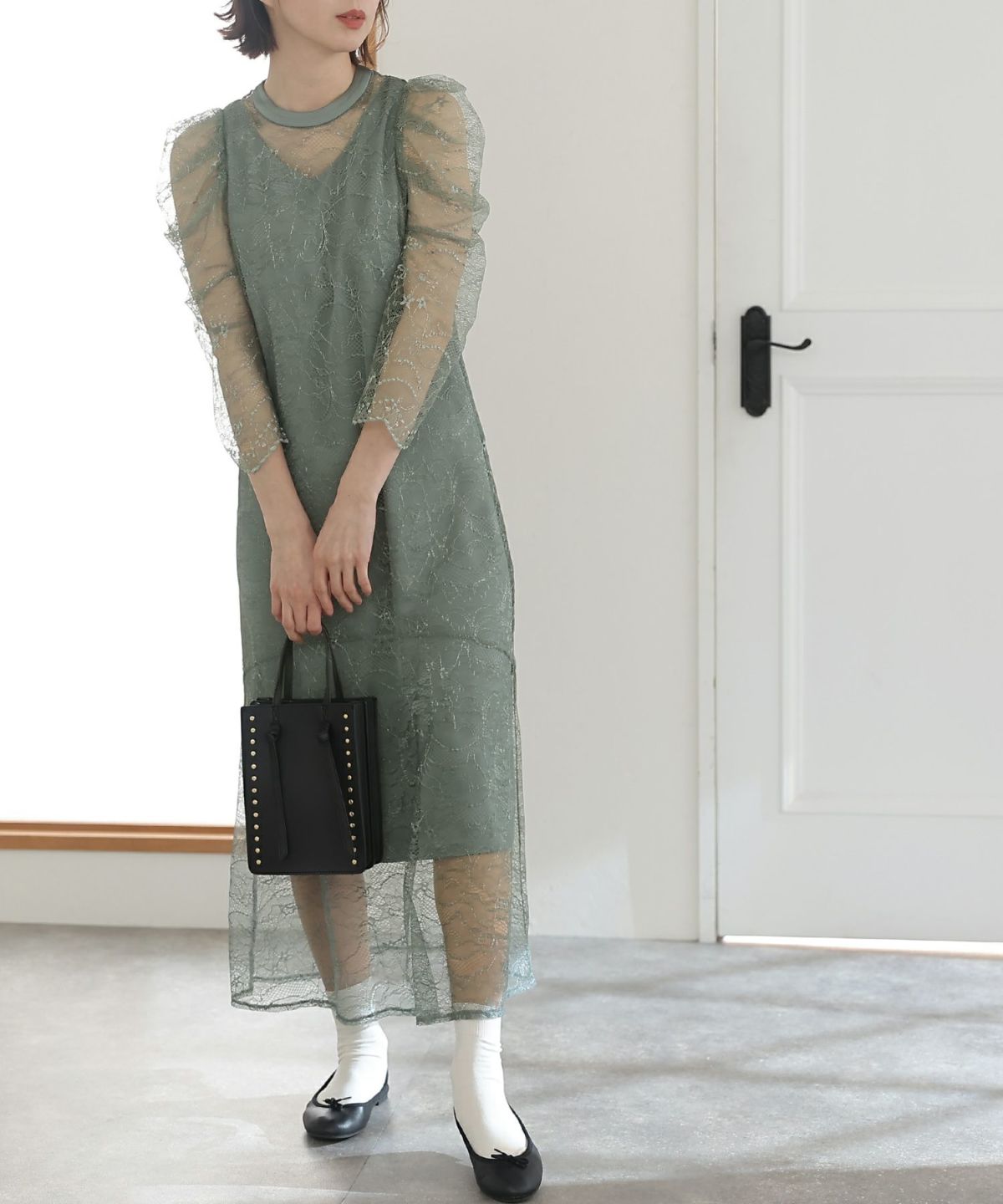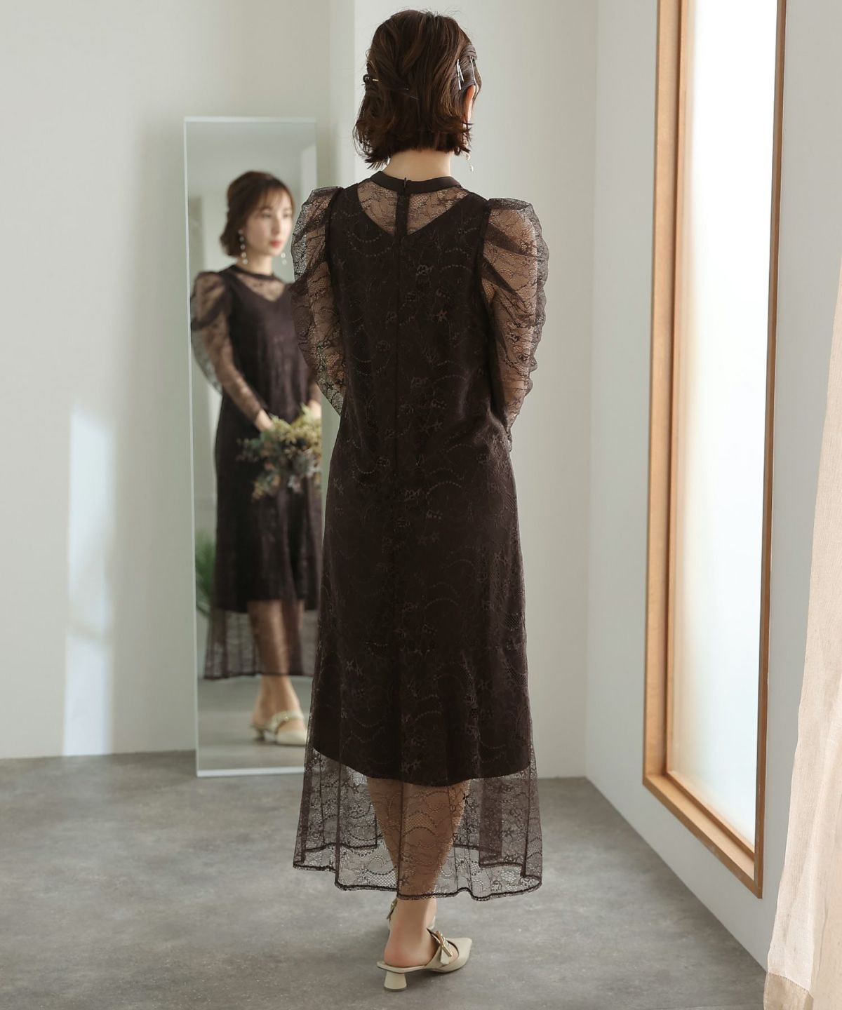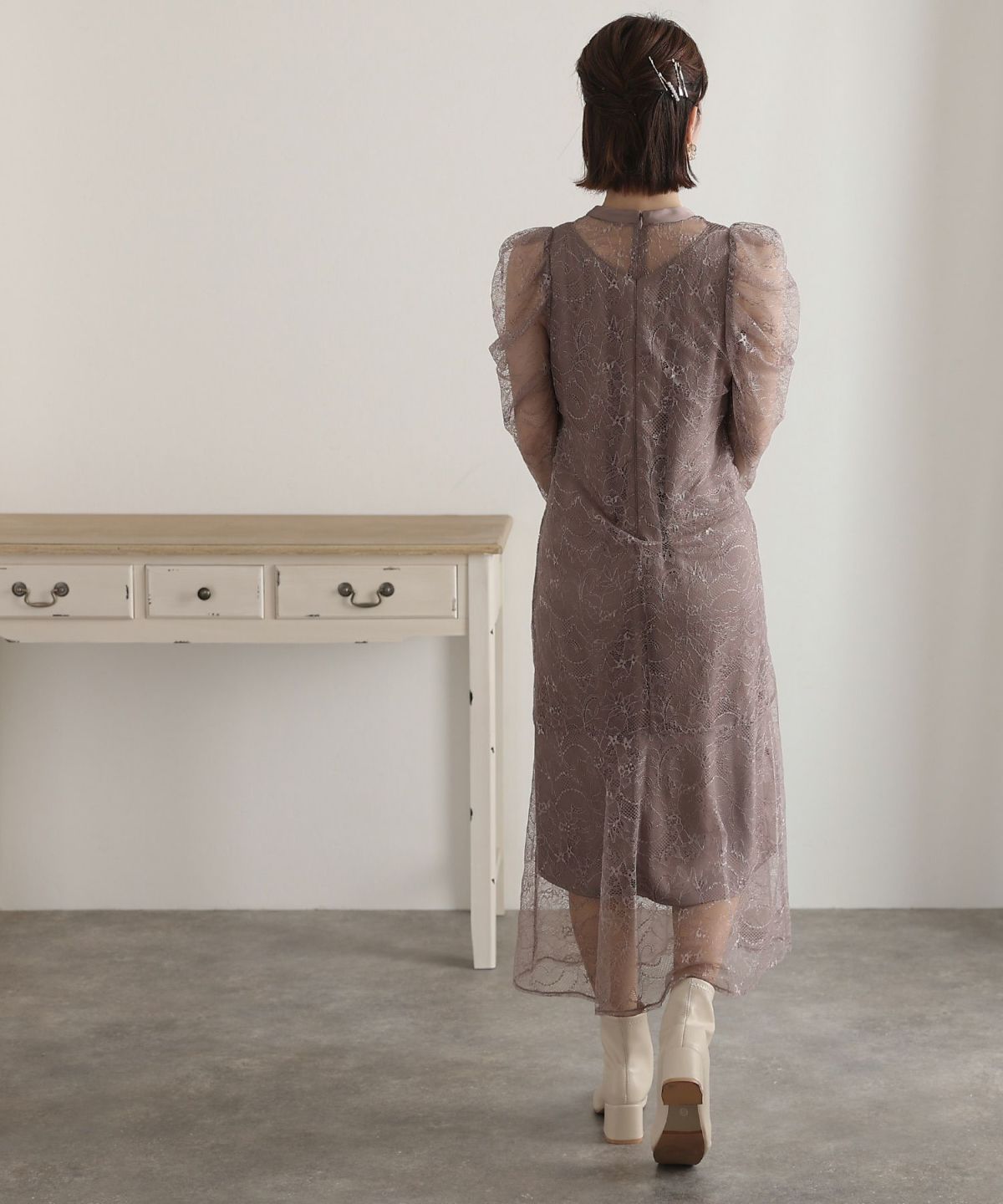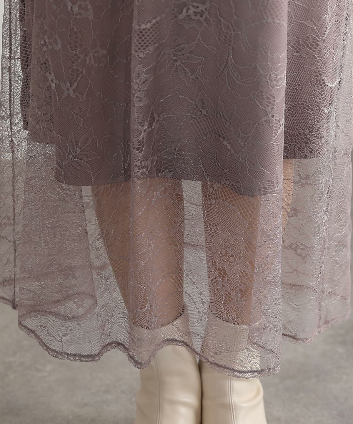 ■繊細レース×ラメの煌きラメ糸が使用された煌めく生地が可愛い。パワーショルダーで気になる肩幅をカバーしながらトレンド感もあり◎足元の透け感とラメ生地が華やかさもプラスしてくれます。甘過ぎないデザインが大人っぽいオシャレなワンピースドレスです。