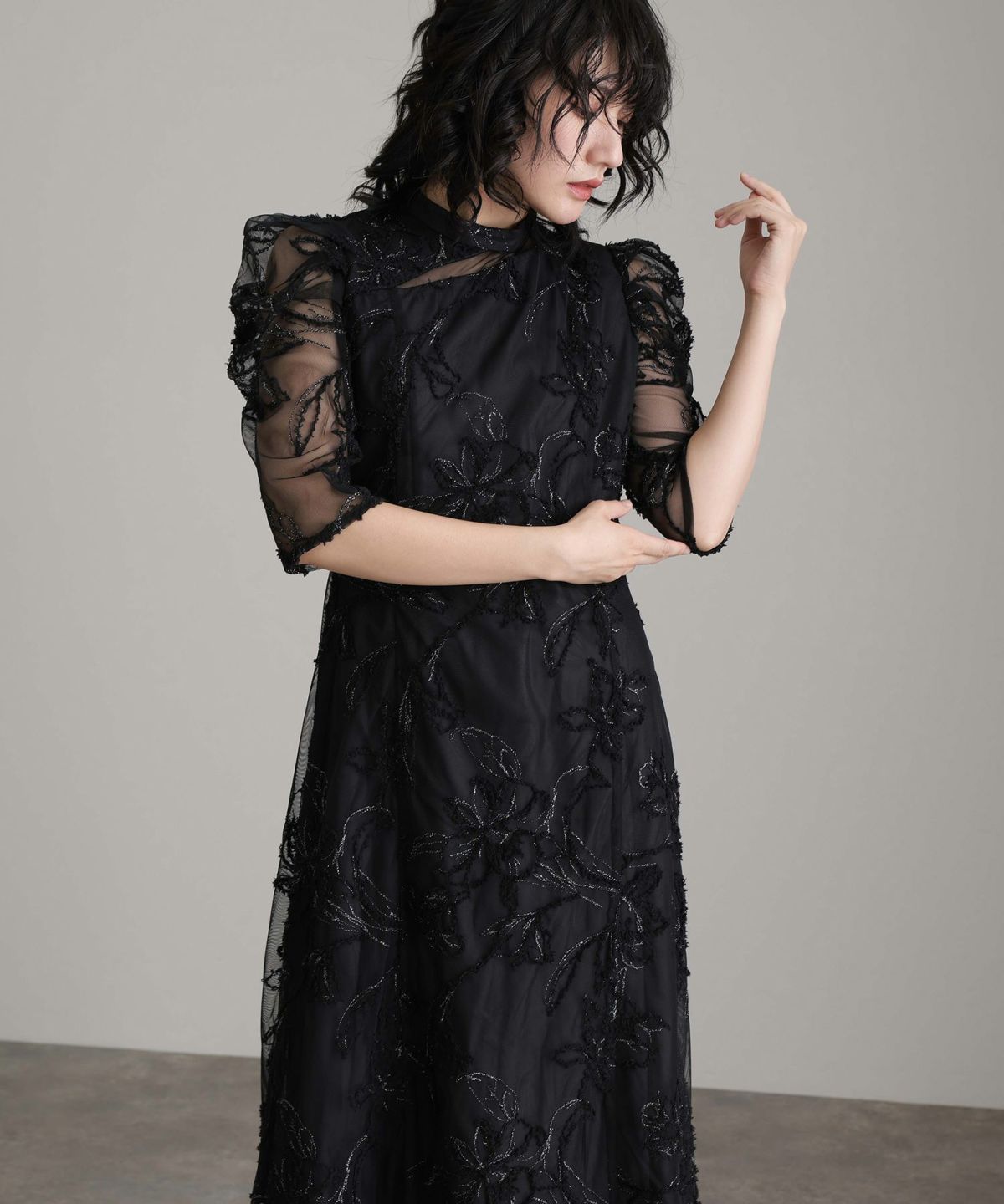立体刺繍レースが魅力のアシンメトリーカットドレス