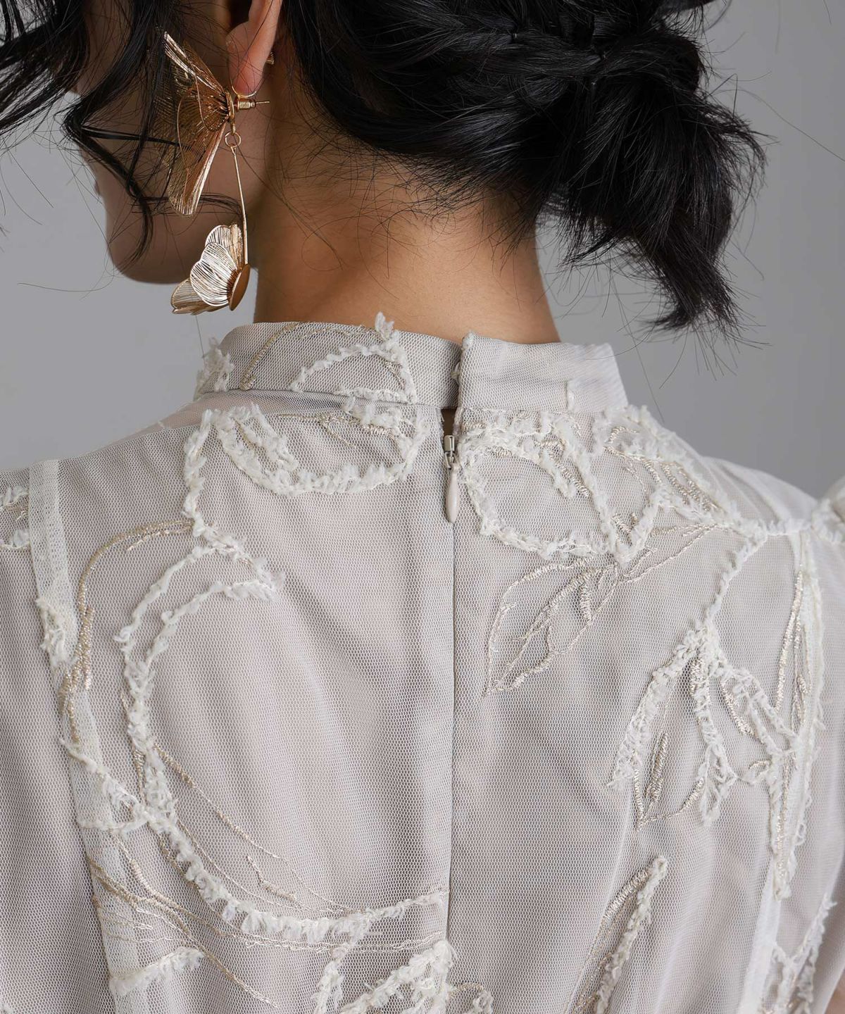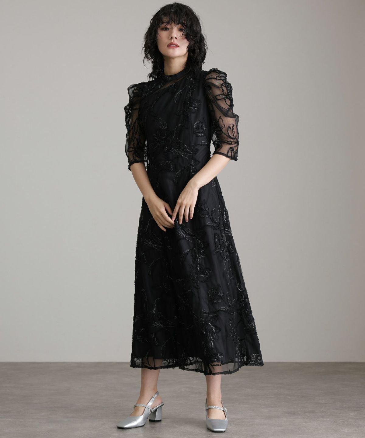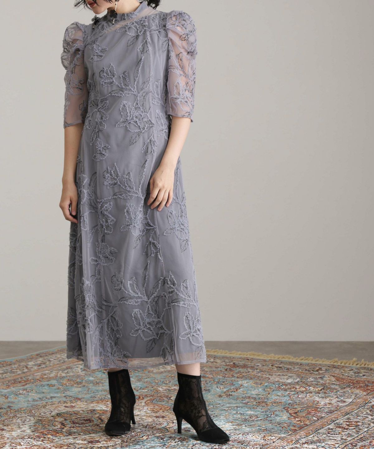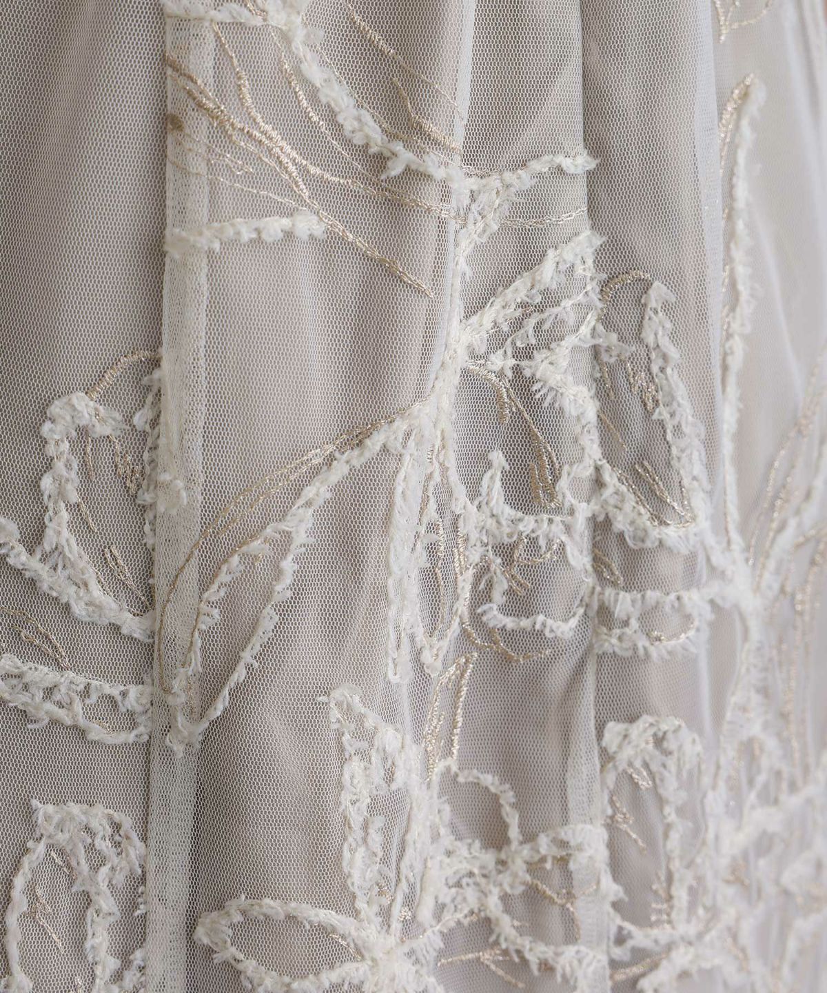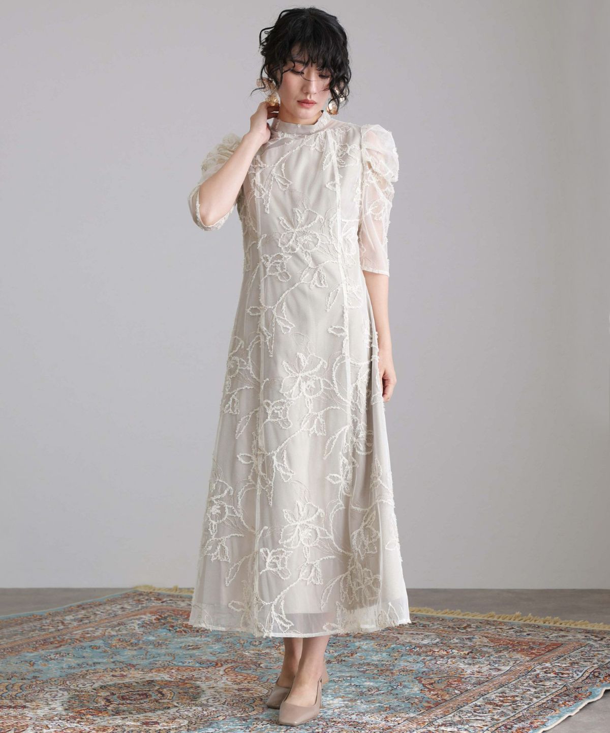 立体刺繍レースが魅力のアシンメトリーカットドレス