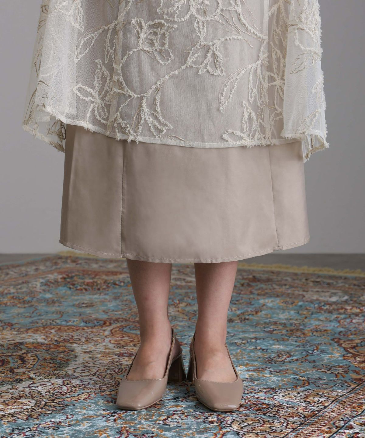 ウエストから裾にかけて広がるAラインシルエットが、ヒップや太ももを自然にカバーしてくれます