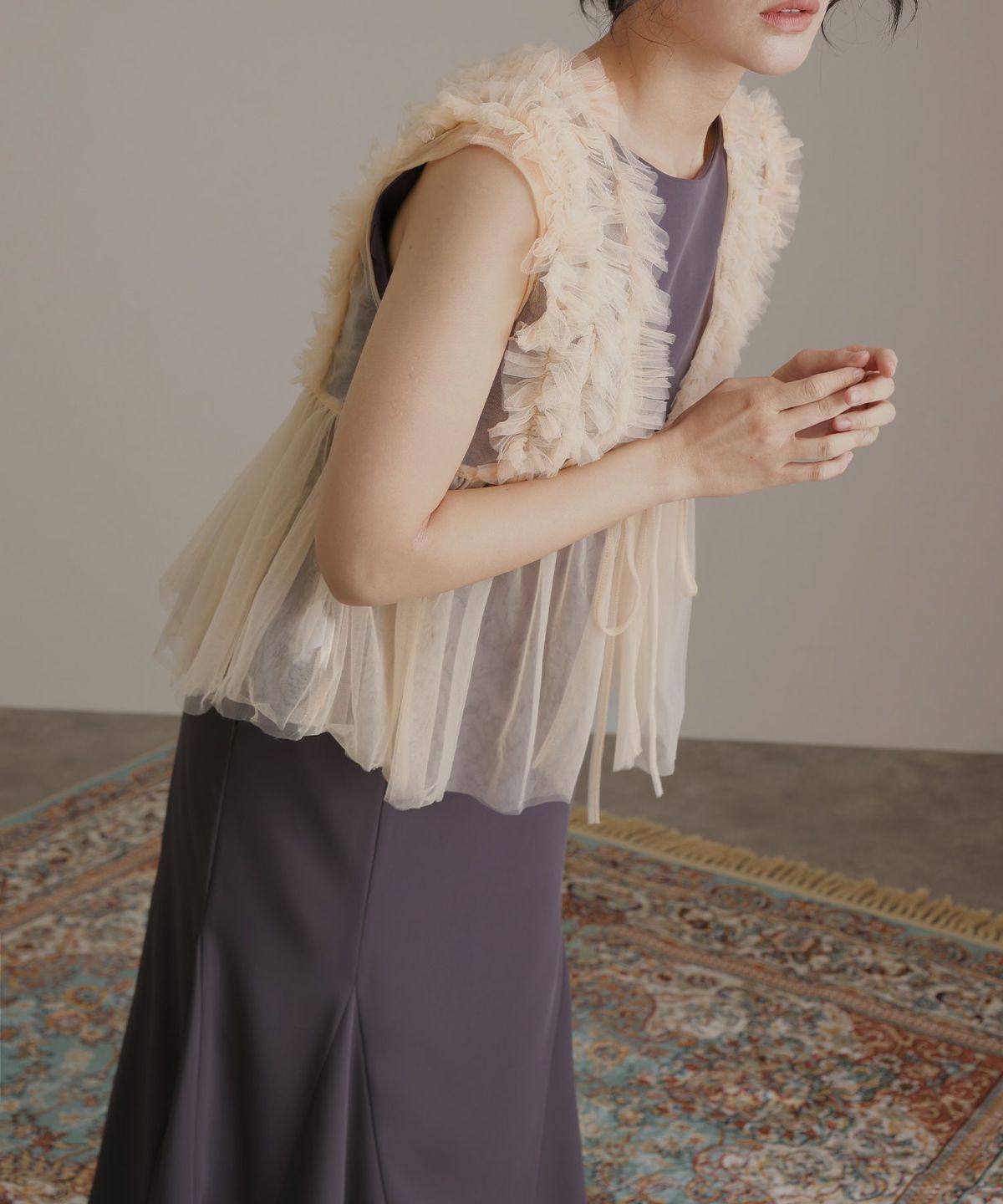 チュールトップスとドレスはアンサンブルになっているので、