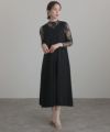 Aライン×透け感レース ジレレイヤード風レースワンピース