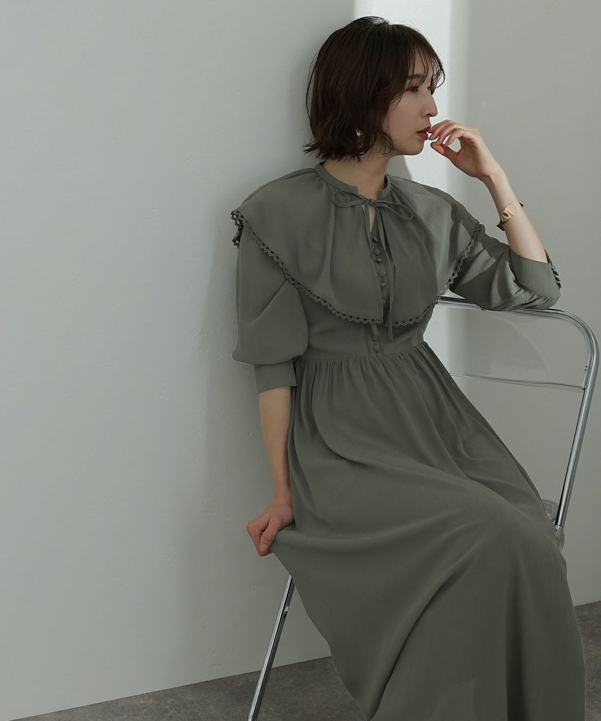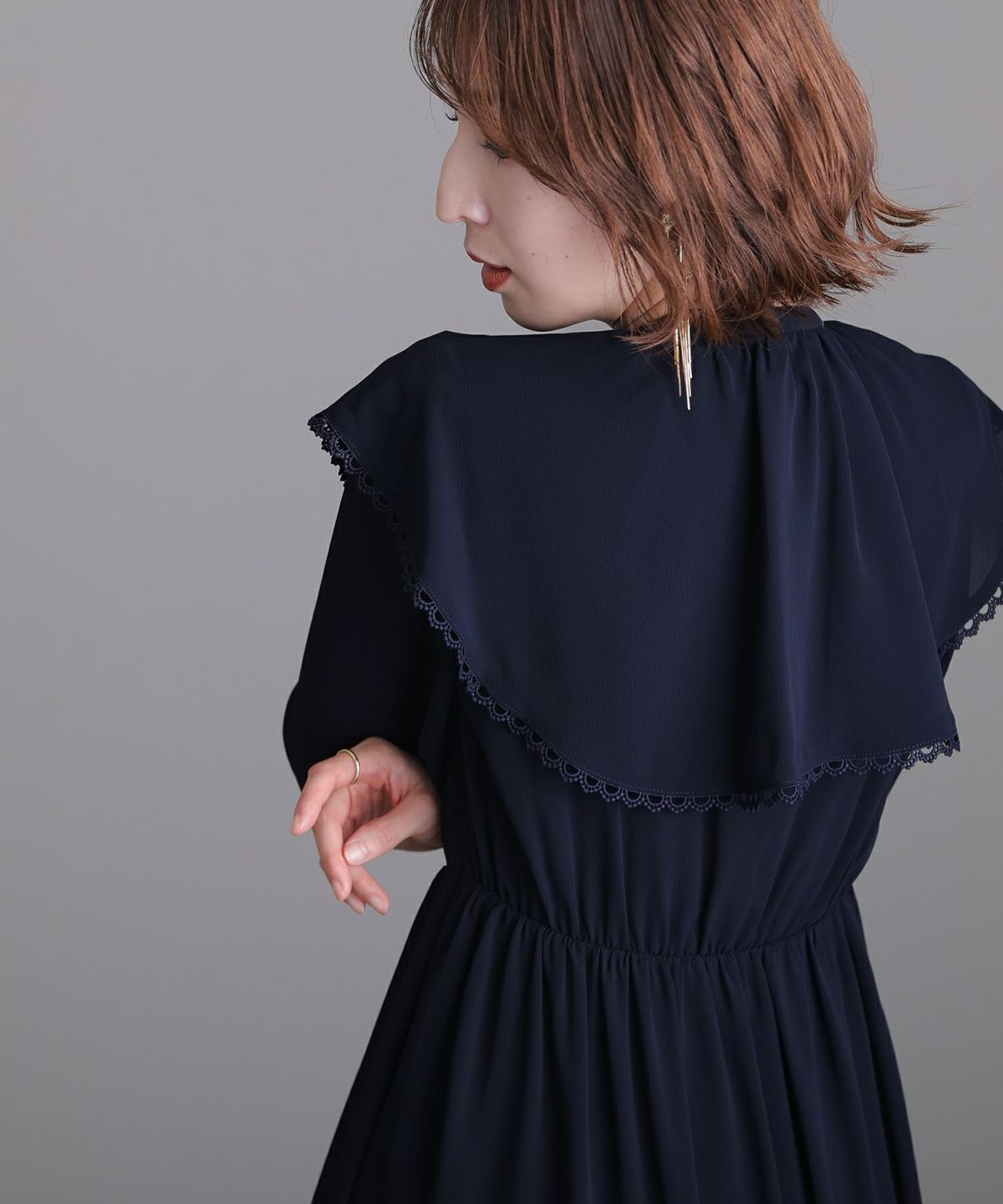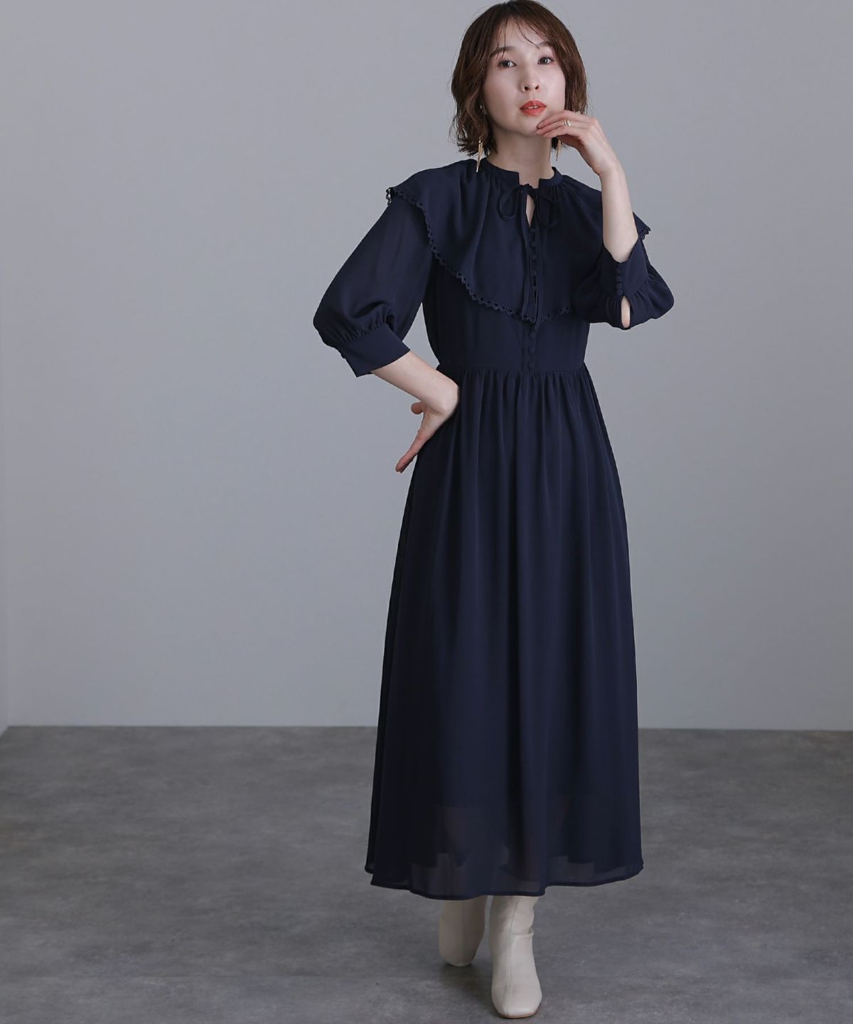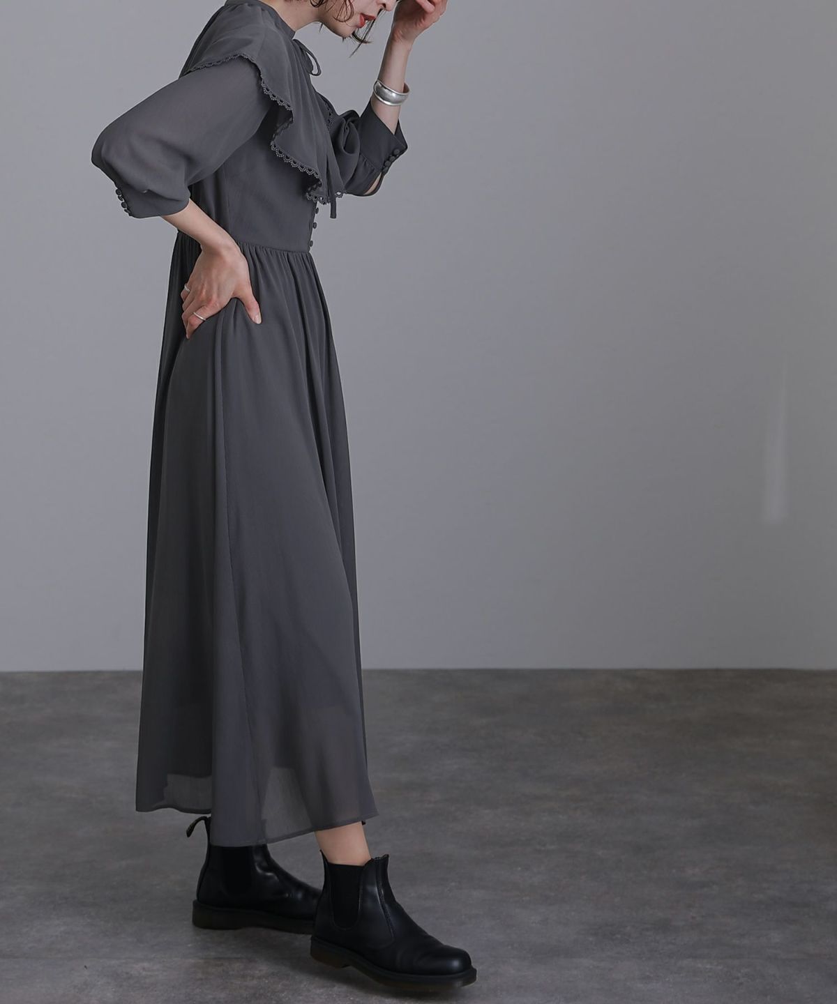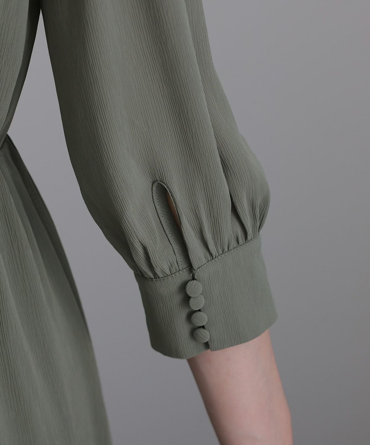 ■ビックカラー×総シフォントレンドのビックカラーを取り入れたクラシカルで大人可愛いワンピースです。総シフォンのためお肌の透きを気にせず上品で落ち着きのある雰囲気を演出。胸元のリボンとさりげないボタンがアクセントのお洒落なデザイン。パーティードレスとしてはもちろん、デイリーでも活躍できる着回しアイテムです。