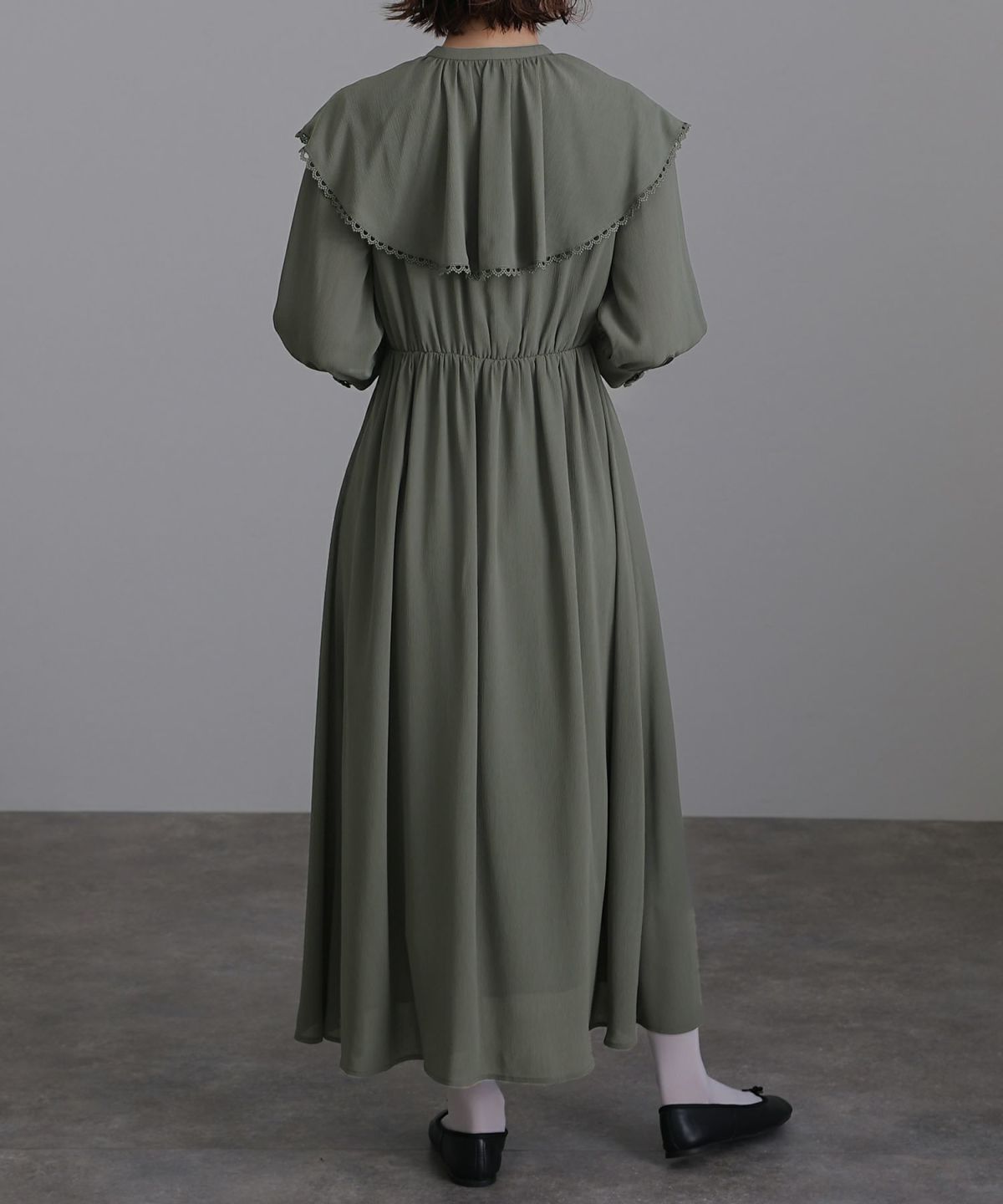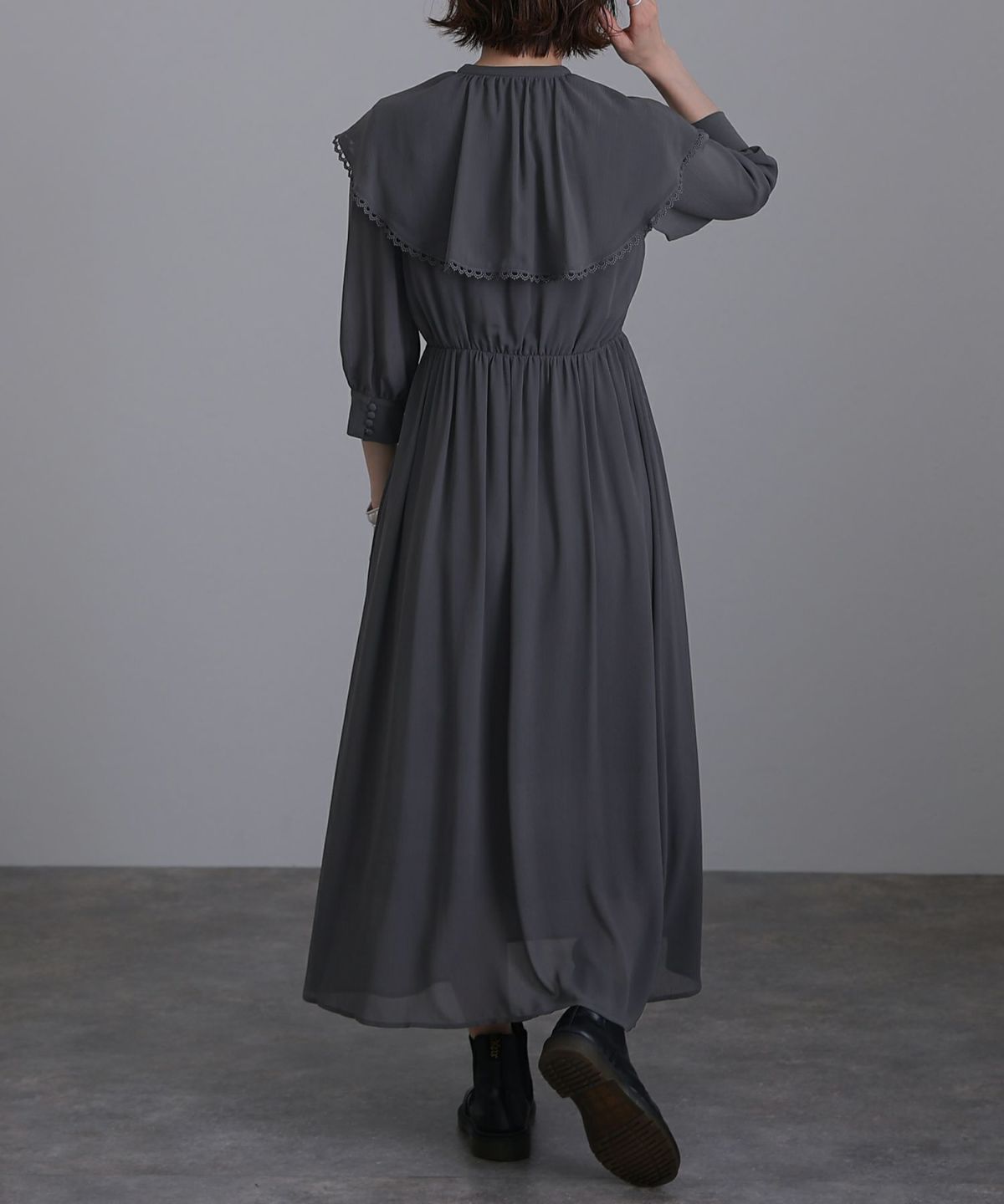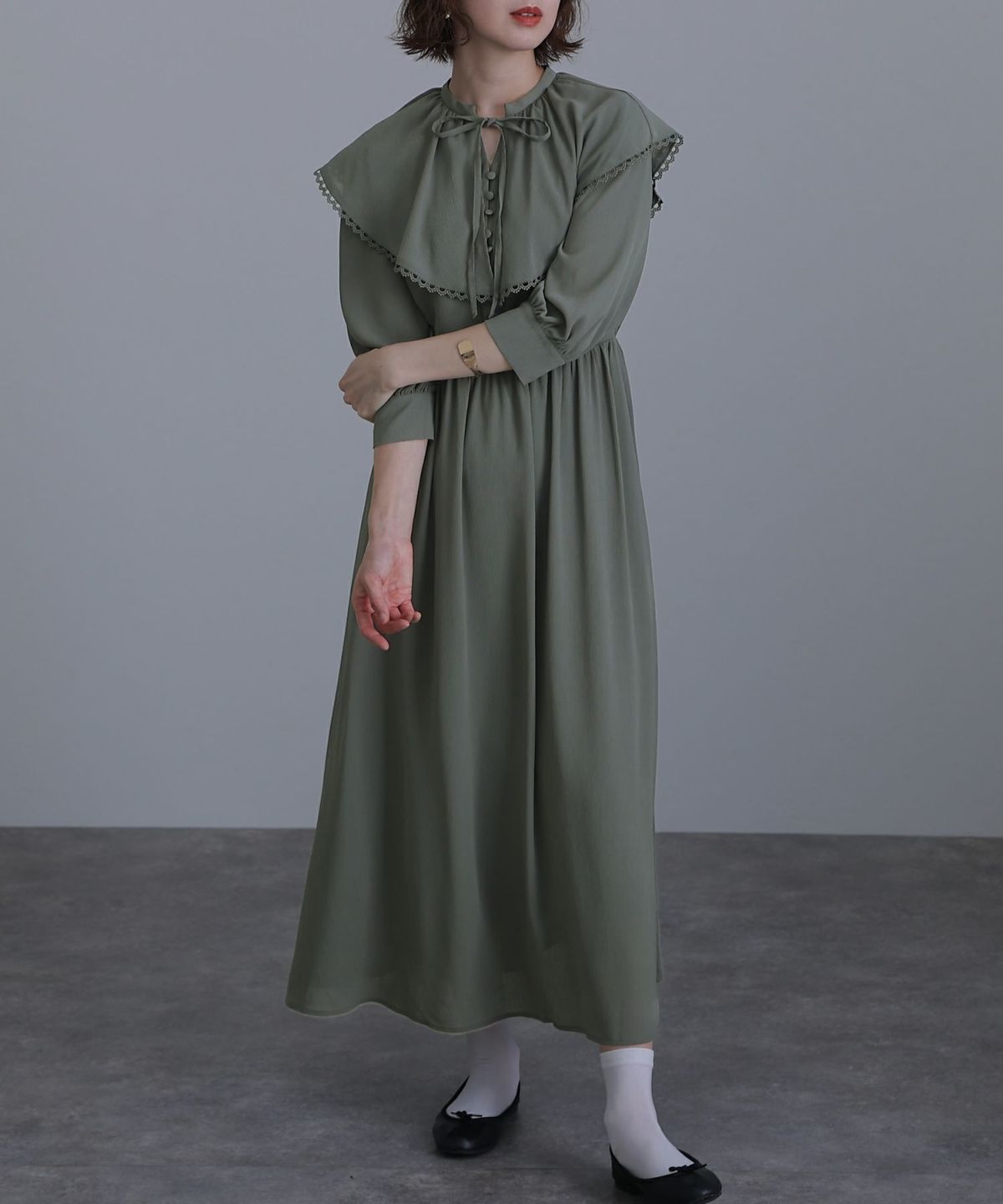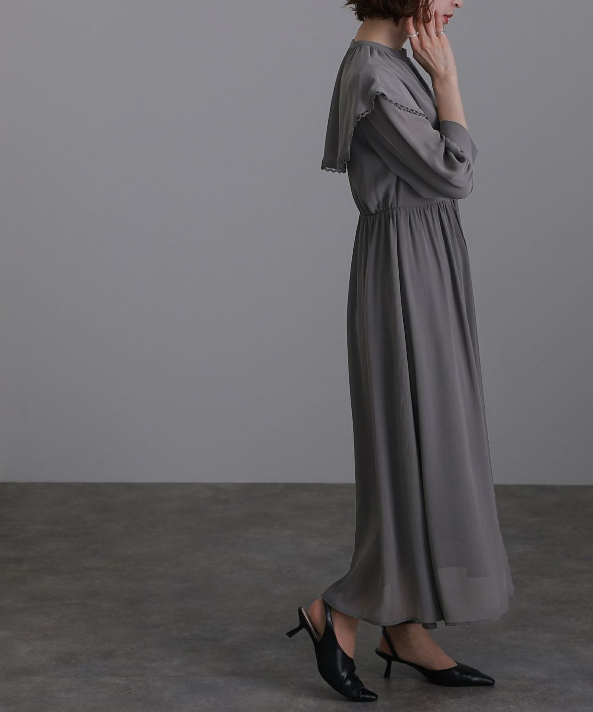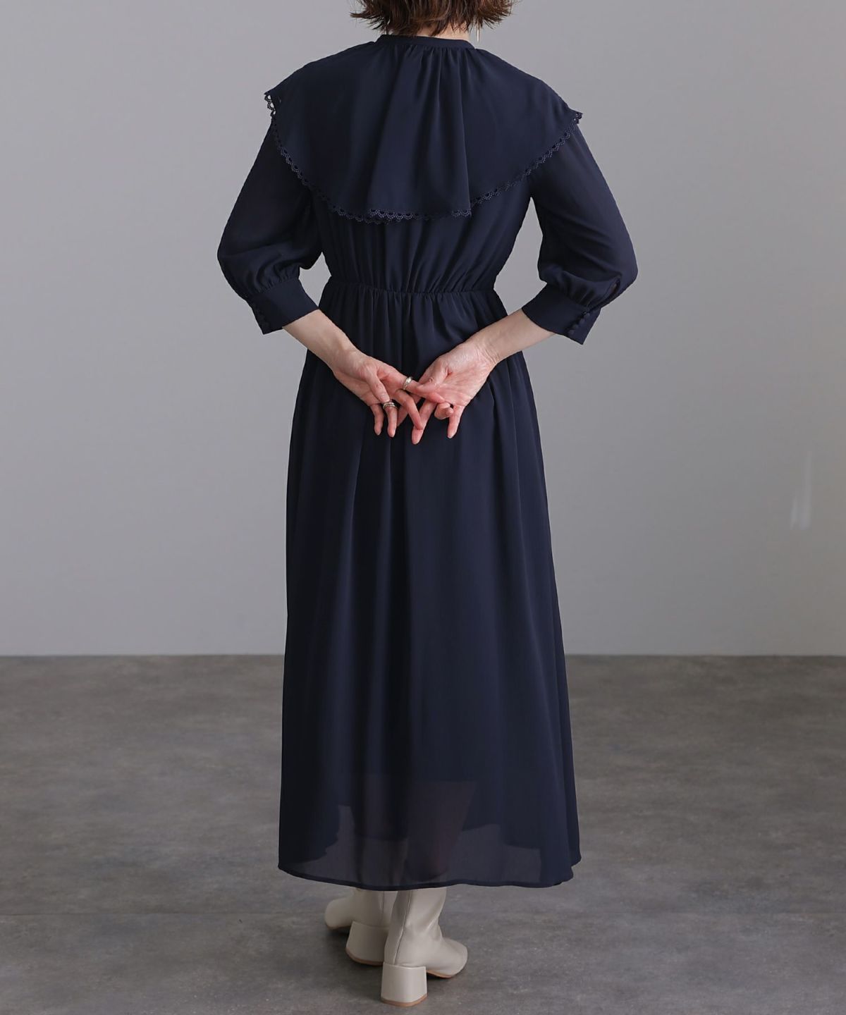 ■ビックカラー×総シフォントレンドのビックカラーを取り入れたクラシカルで大人可愛いワンピースです。総シフォンのためお肌の透きを気にせず上品で落ち着きのある雰囲気を演出。胸元のリボンとさりげないボタンがアクセントのお洒落なデザイン。パーティードレスとしてはもちろん、デイリーでも活躍できる着回しアイテムです。