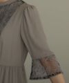 ■ボタニカル柄×刺繍レースボタニカル柄の刺繍レースを胸元、袖口、裾切り替えに使用したデザイン性の高いワンピース。すらっとしたAラインのシルエットが上品で美しい。レースは程よい透け感で大人可愛いです。レトロ調なイメージでデイリー使いにもぴったり。