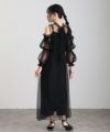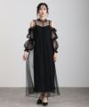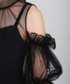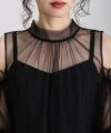肩の開いたデザインとチュール素材が上品な透け感を生み出し、女性らしさを引き立てます。