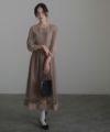 スカートのチュール素材や袖の透け感が女性らしい印象を与えてくれます。