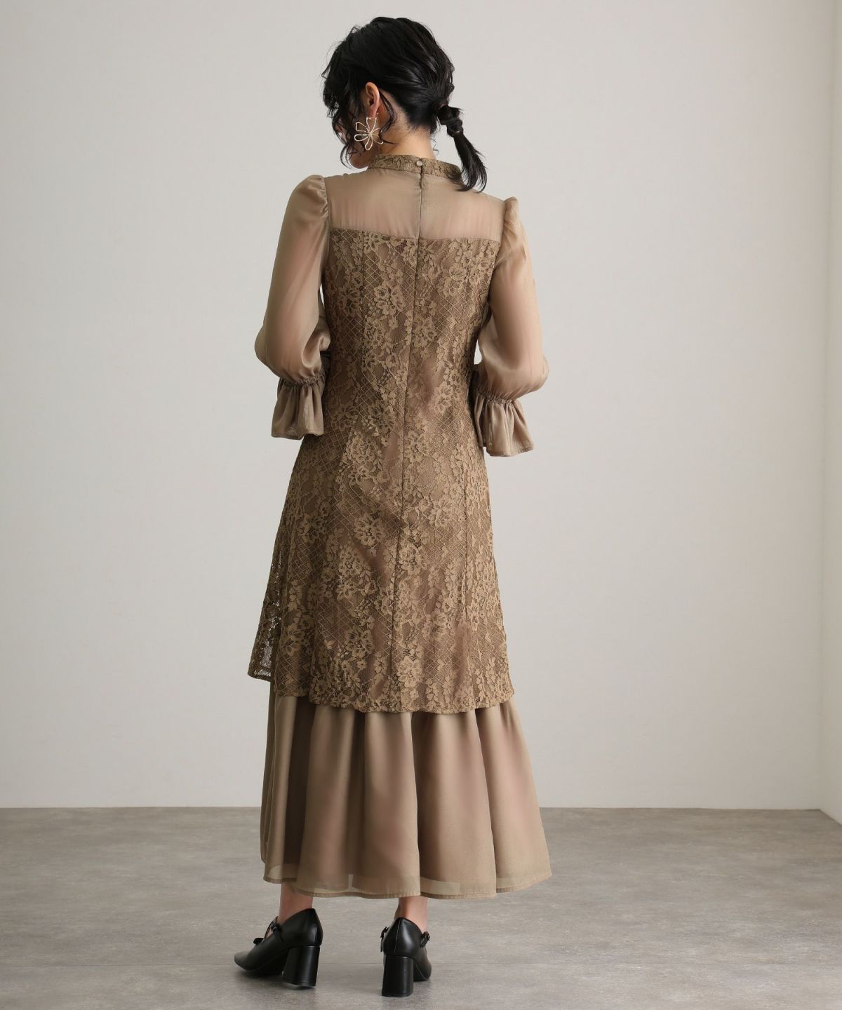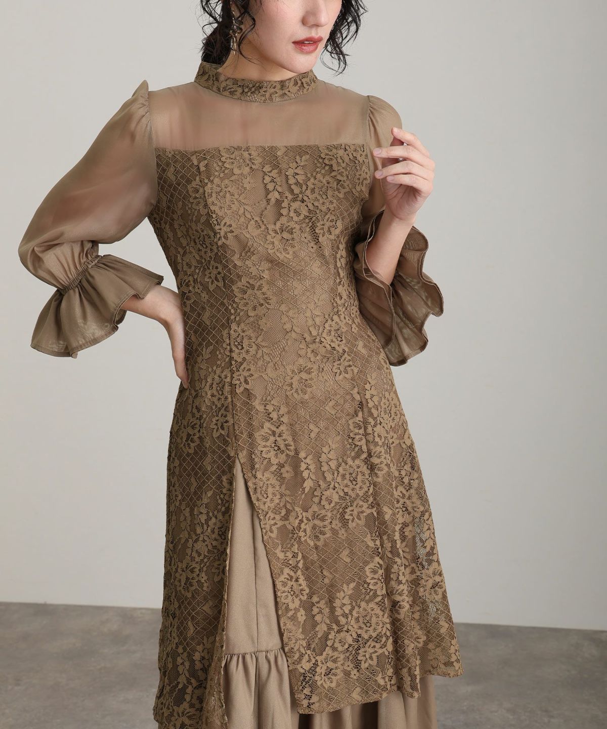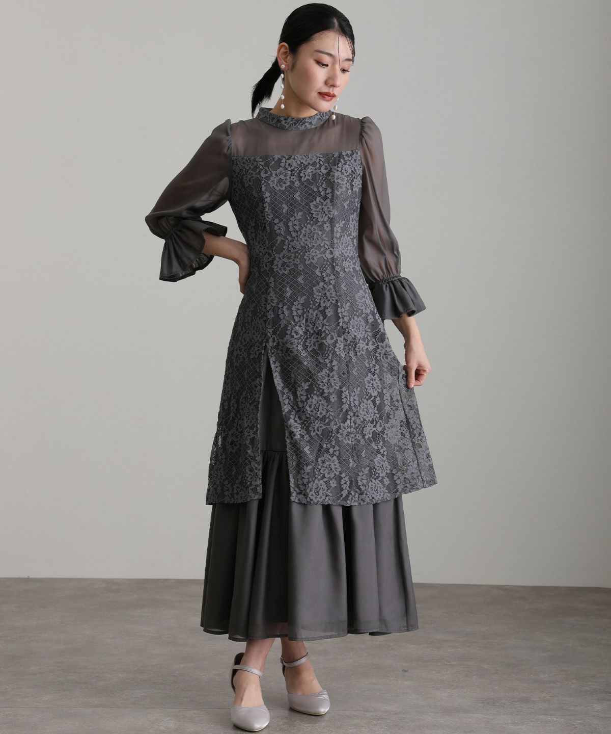 レースとオーガンジー素材が組み合わさった華やかなドレス。