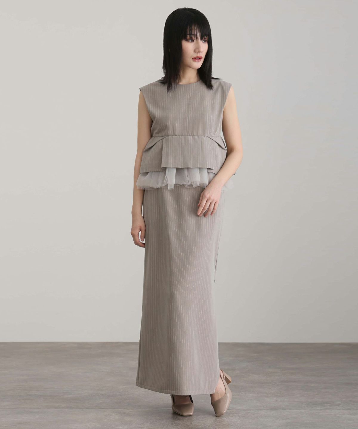 ペプラムデザインが女性らしいトップスと、すっきりとしたスカートの2点セット。