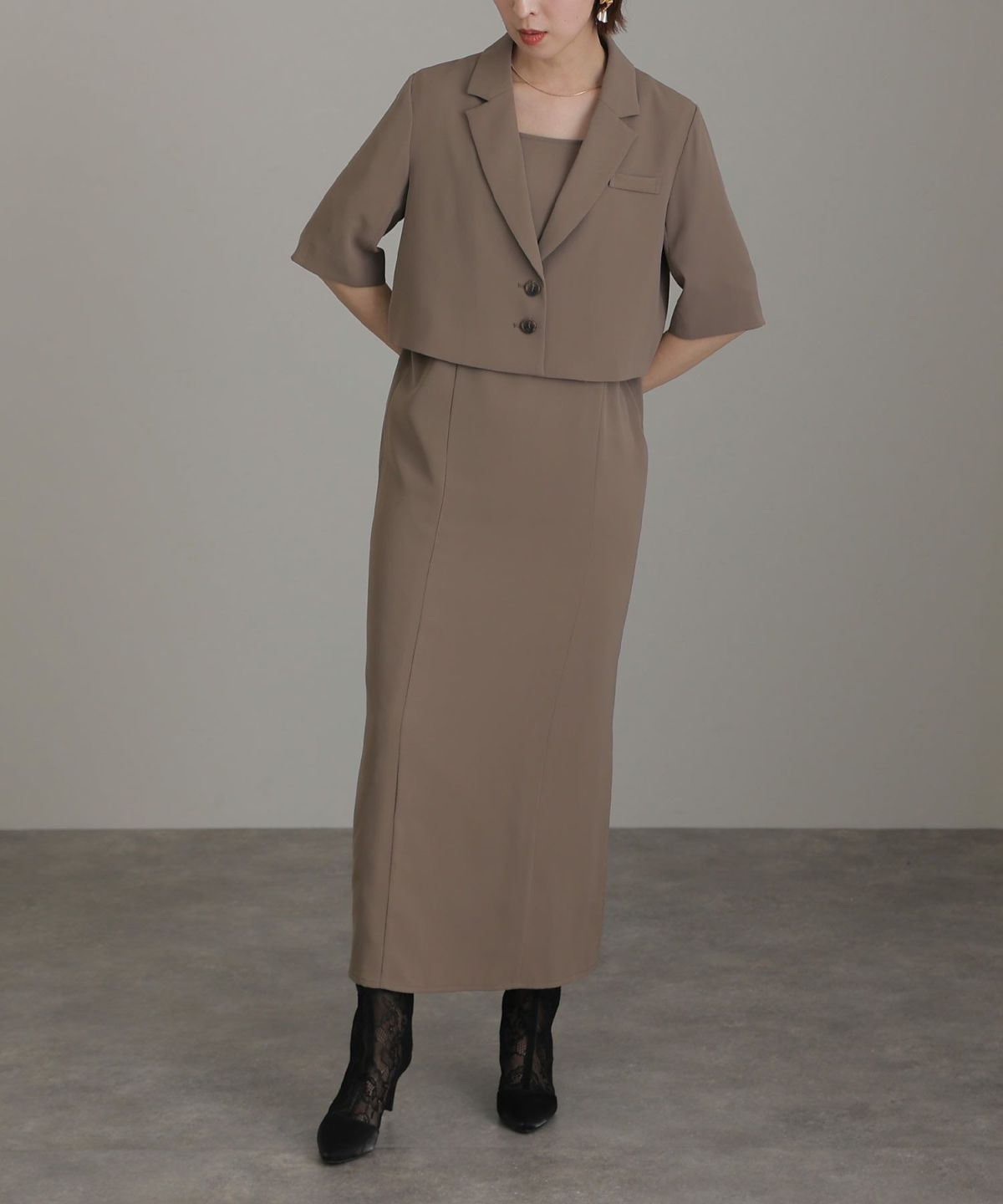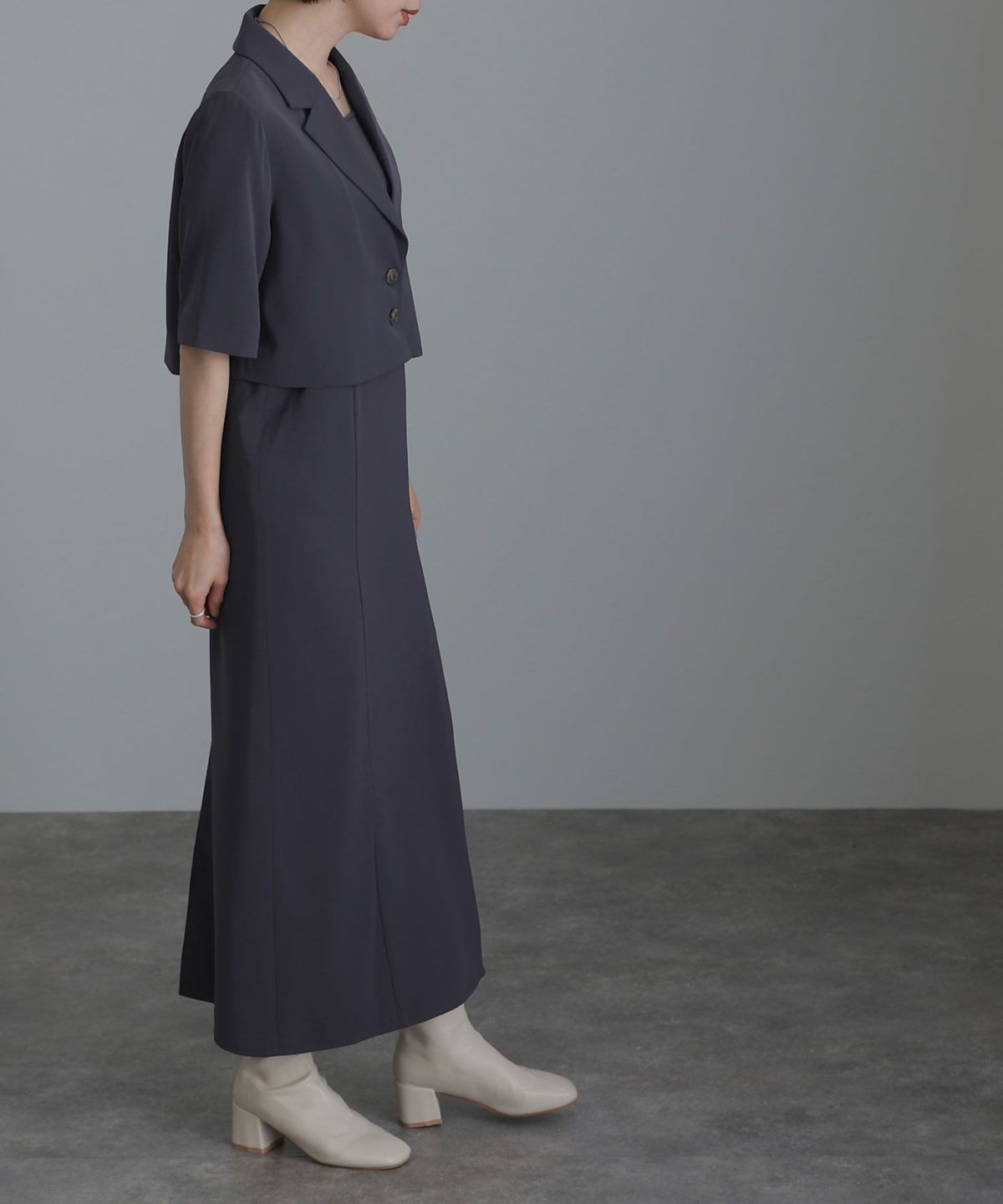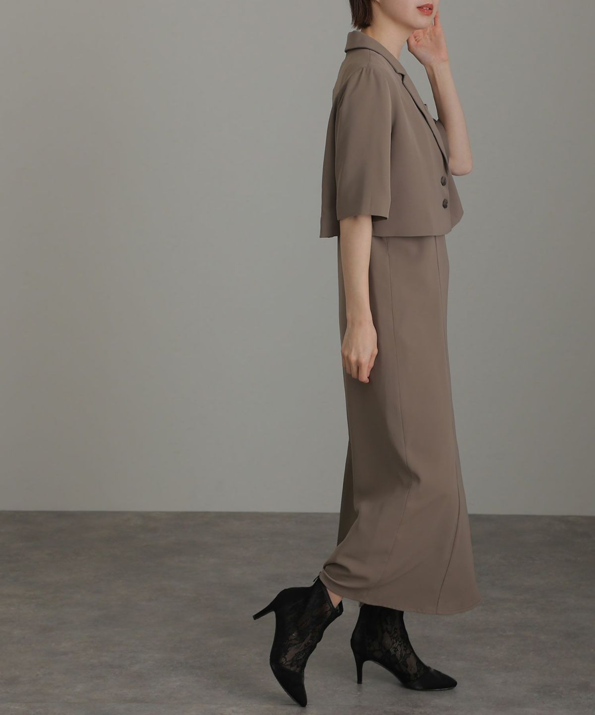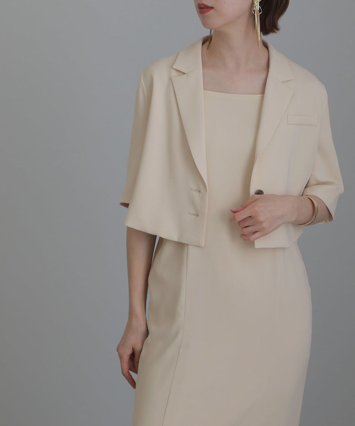 ■ジャケット×ワンピースショート丈ジャケットとタイトシルエットワンピースのセットアップ。シンプルでモードな雰囲気がおしゃれなアイテムです。タイトなワンピースが上品で女性らしい印象に。ワンピースとジャケットを別々に着用できるのでコーデの幅も広がります。