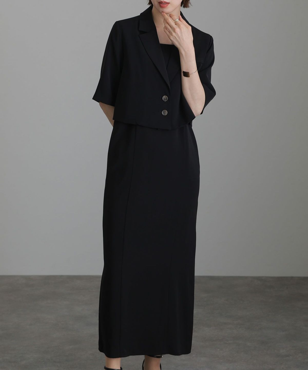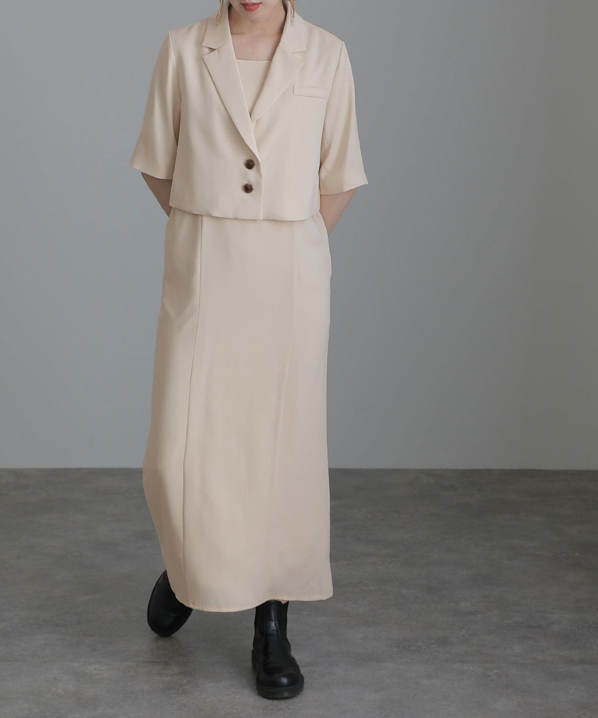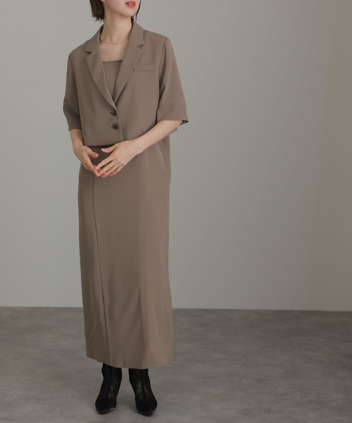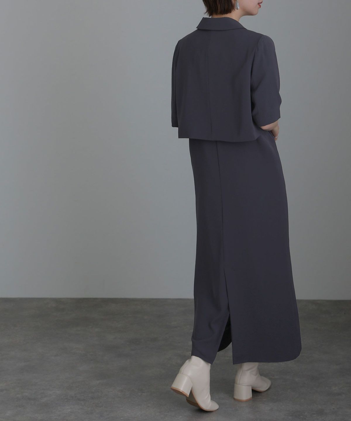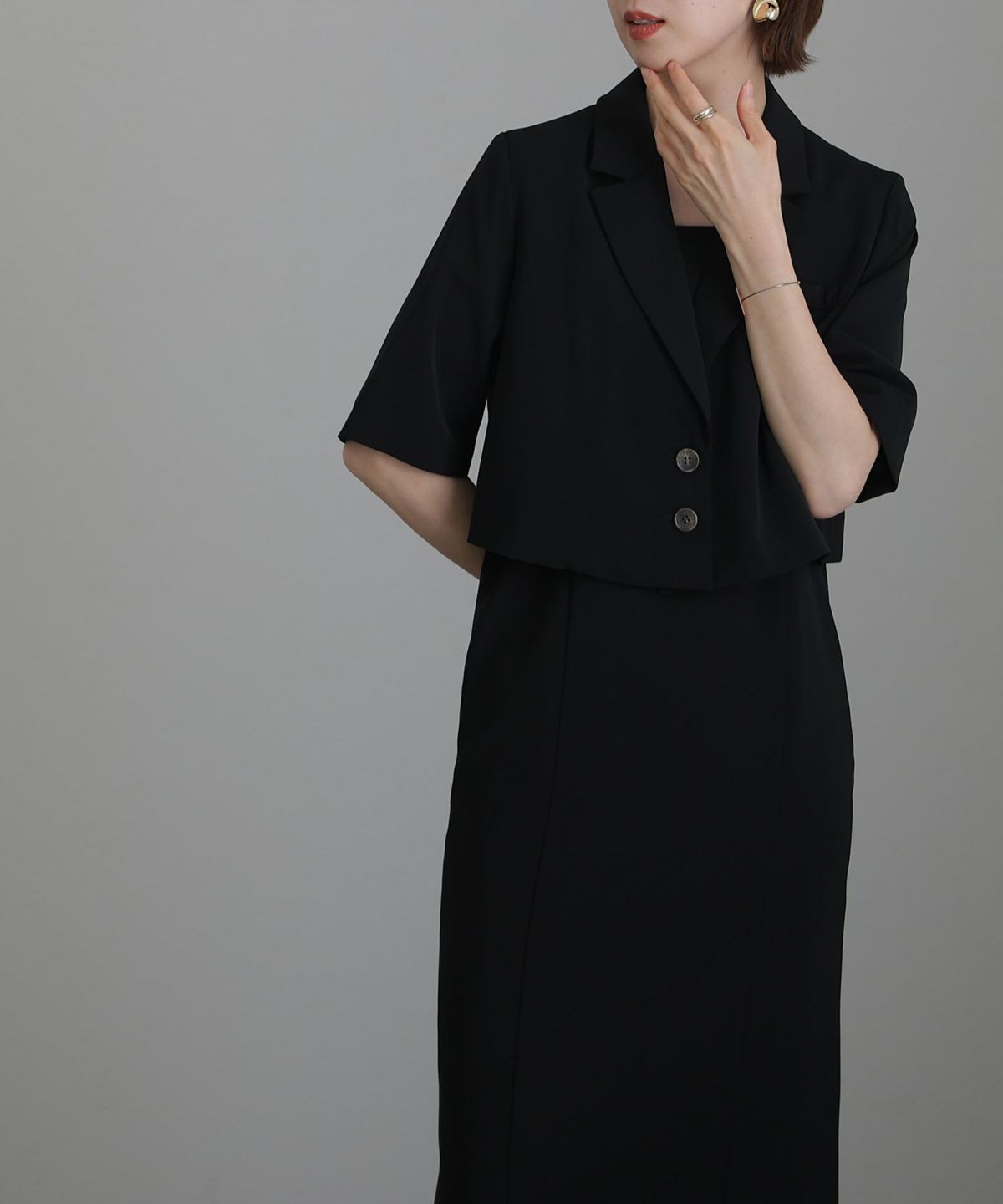 ■ジャケット×ワンピースショート丈ジャケットとタイトシルエットワンピースのセットアップ。シンプルでモードな雰囲気がおしゃれなアイテムです。タイトなワンピースが上品で女性らしい印象に。ワンピースとジャケットを別々に着用できるのでコーデの幅も広がります。