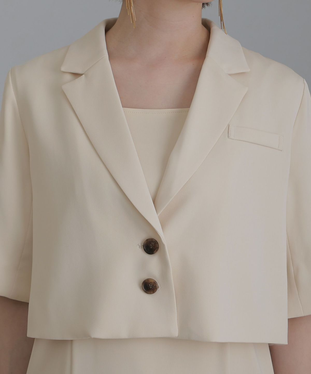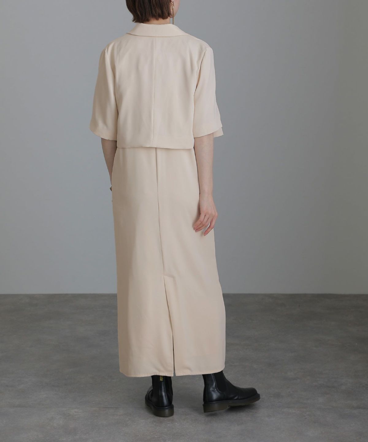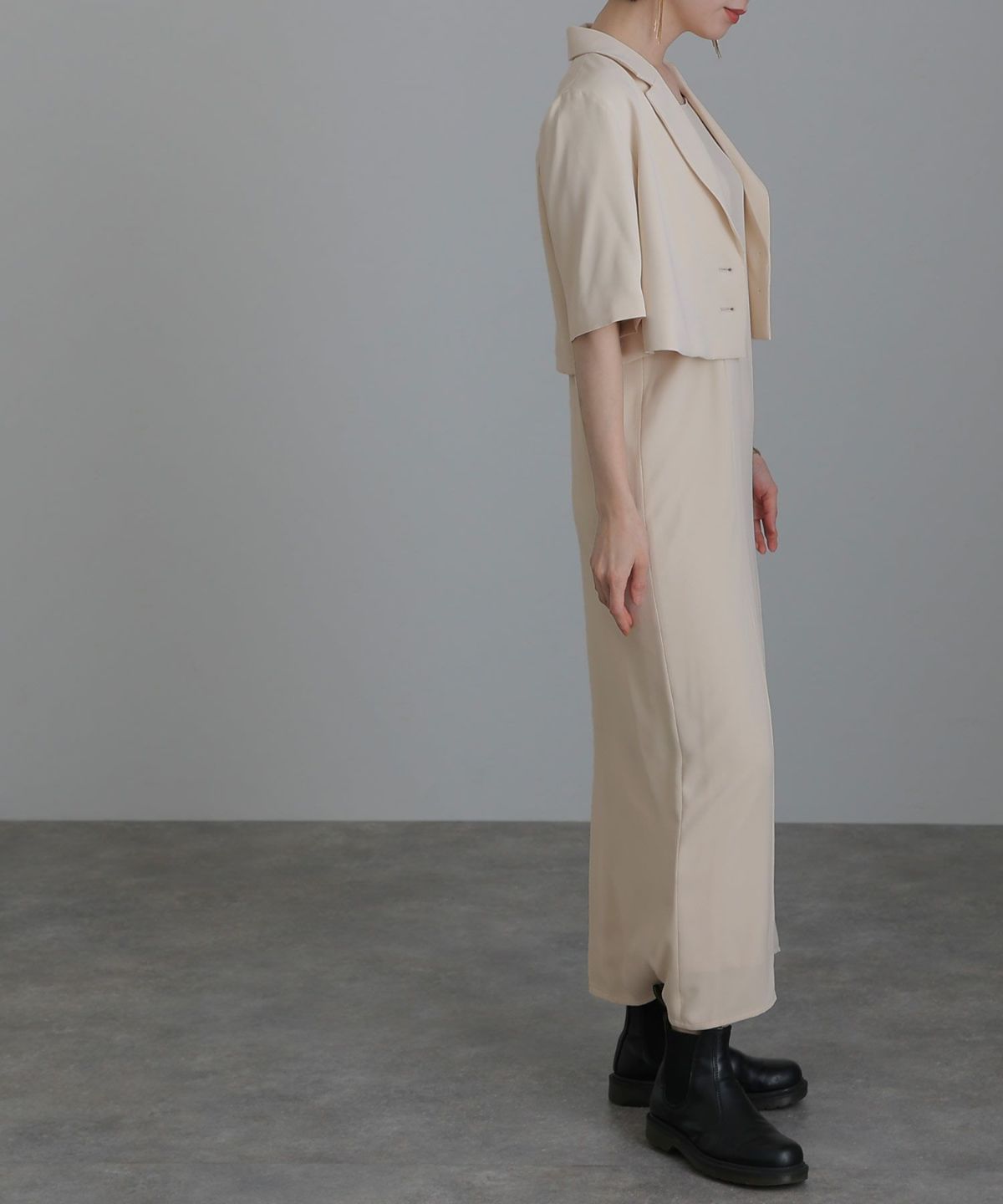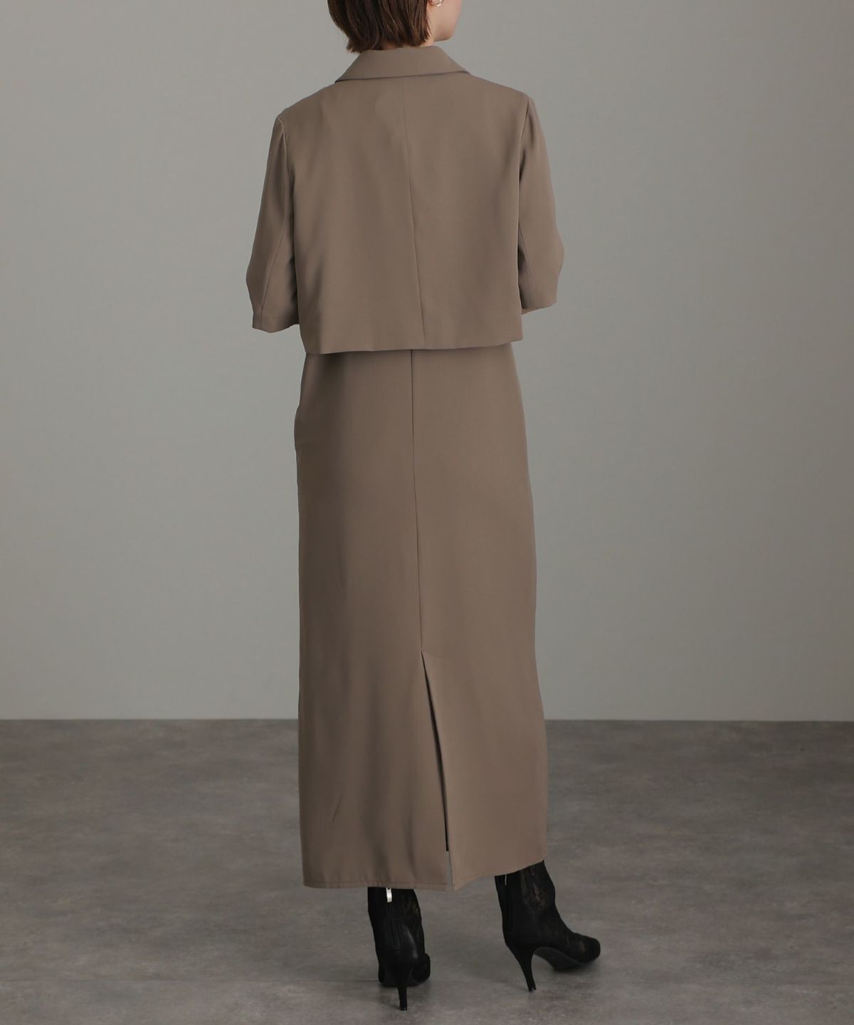 ■ジャケット×ワンピースショート丈ジャケットとタイトシルエットワンピースのセットアップ。シンプルでモードな雰囲気がおしゃれなアイテムです。タイトなワンピースが上品で女性らしい印象に。ワンピースとジャケットを別々に着用できるのでコーデの幅も広がります。