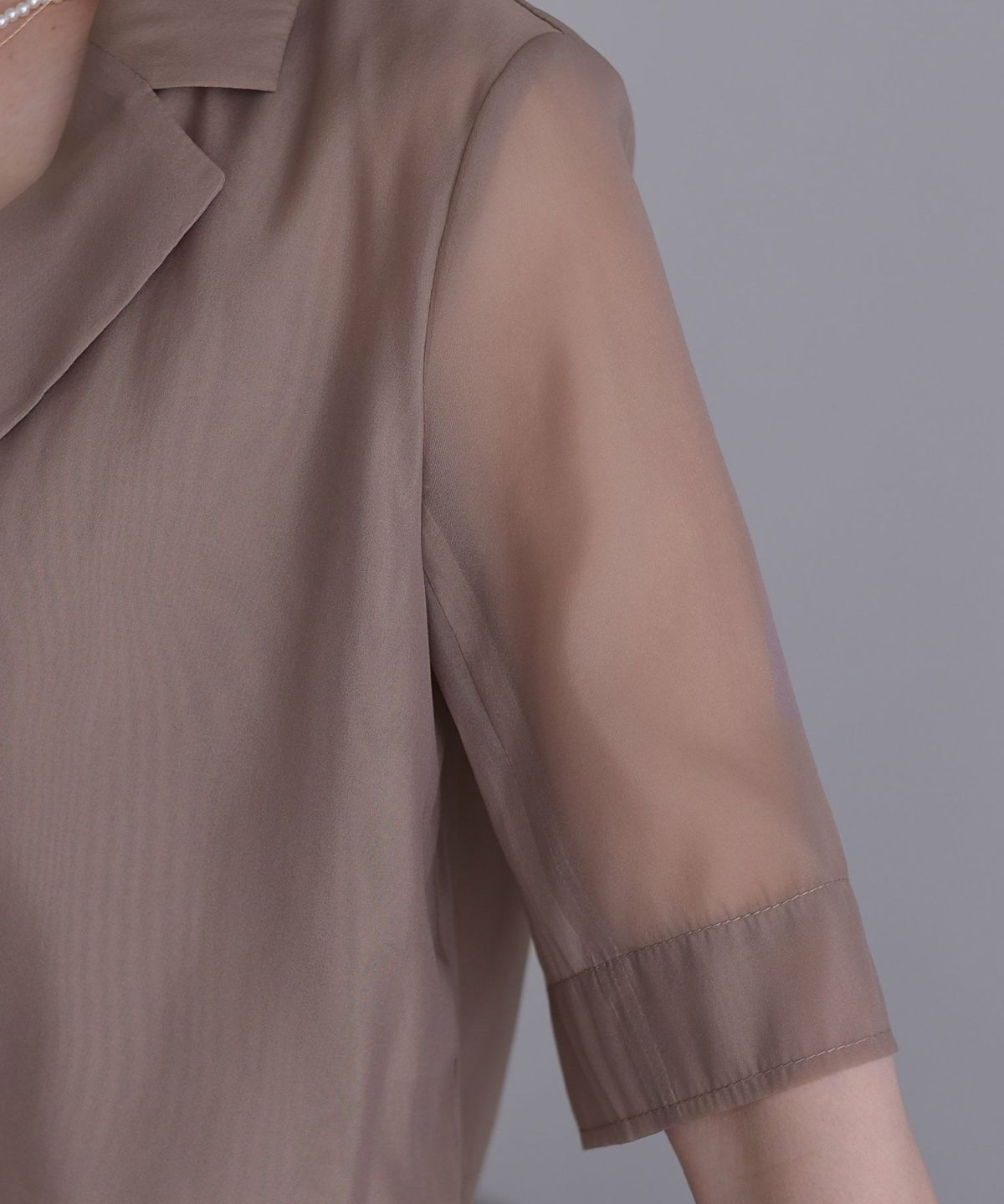 ■クールでおしゃれなシアージャケット体型カバーポイント:【二の腕】【脚】【ウエスト】【ヒップ】やや光沢感のあるジャケットは、高級感がありおしゃれです。袖部分のレースがフェミニンな上品さも感じさせます。