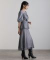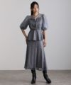ビスチェ風ペプラムのトップスとフレアスカートの2点セット。