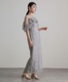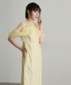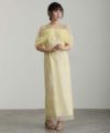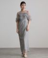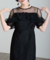 肩まわりにはふんわりとしたチュールのフリルがあしらわれ、優雅なシルエットと華やかさを演出します。