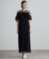 繊細なチュールと立体感のあるリーフ模様の刺繍が美しく調和した上品なロングドレス。
