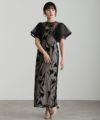 透け感のあるオーガンジーと大胆なフラワー柄が調和した、品格漂うIラインワンピース。
