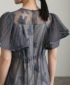 デコルテから肩にかけての程よい透け感と、フリルのように広がる袖がエレガントな印象に。