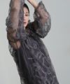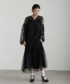 スカート部分はチュール素材で切り替え、ふんわりとしたAラインで女性らしい雰囲気に。