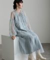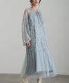 立体感のある刺繍ワンピースにチュールを重ねた、目を惹く華やかさ。