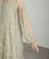 ネック部分のギャザーが顔まわりを華やかに彩る。